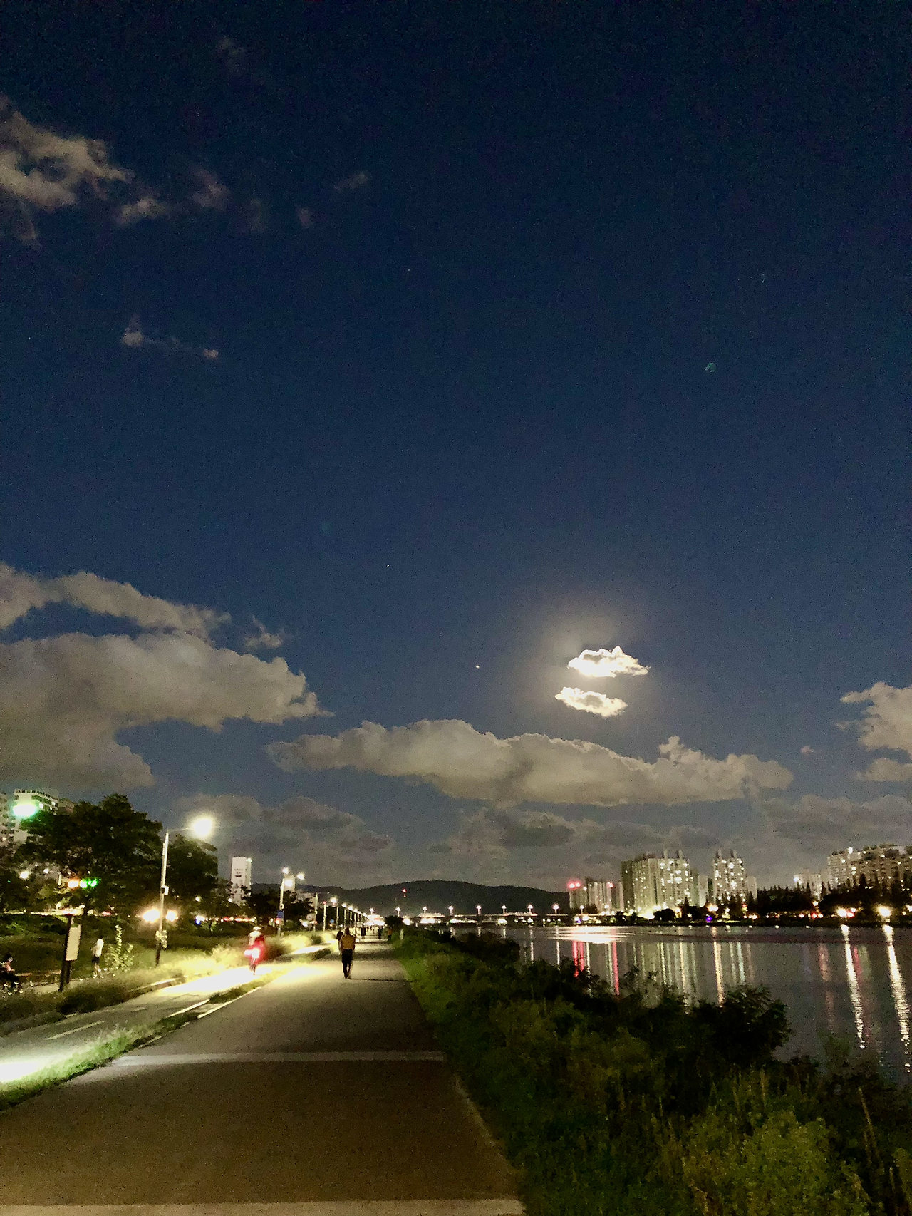 지금 이 도시는 전국체전으로 후끈한 것 같지만 실상 일반 시민들은 체감을 잘 못한다. 도시 곳곳에서 경기가 열리고 있지만 그곳에 가지 않는 이상 후끈함은 전달받지 못한다. 전국체전이 열리기 전 날 밤하늘을 환하게 밝히는 불 때문에 불이 난 것만 같았다. 강변을 다니는 사람들 역시 이 먼 곳에서 지 곳의 불이 난 장면을 사진을 찍고 있었다. 그러나 불이 났다는 뉴스는 나지 않았다. 아마도 전국체전의 일환으로 무슨 행사를 한 것으로 보인다.