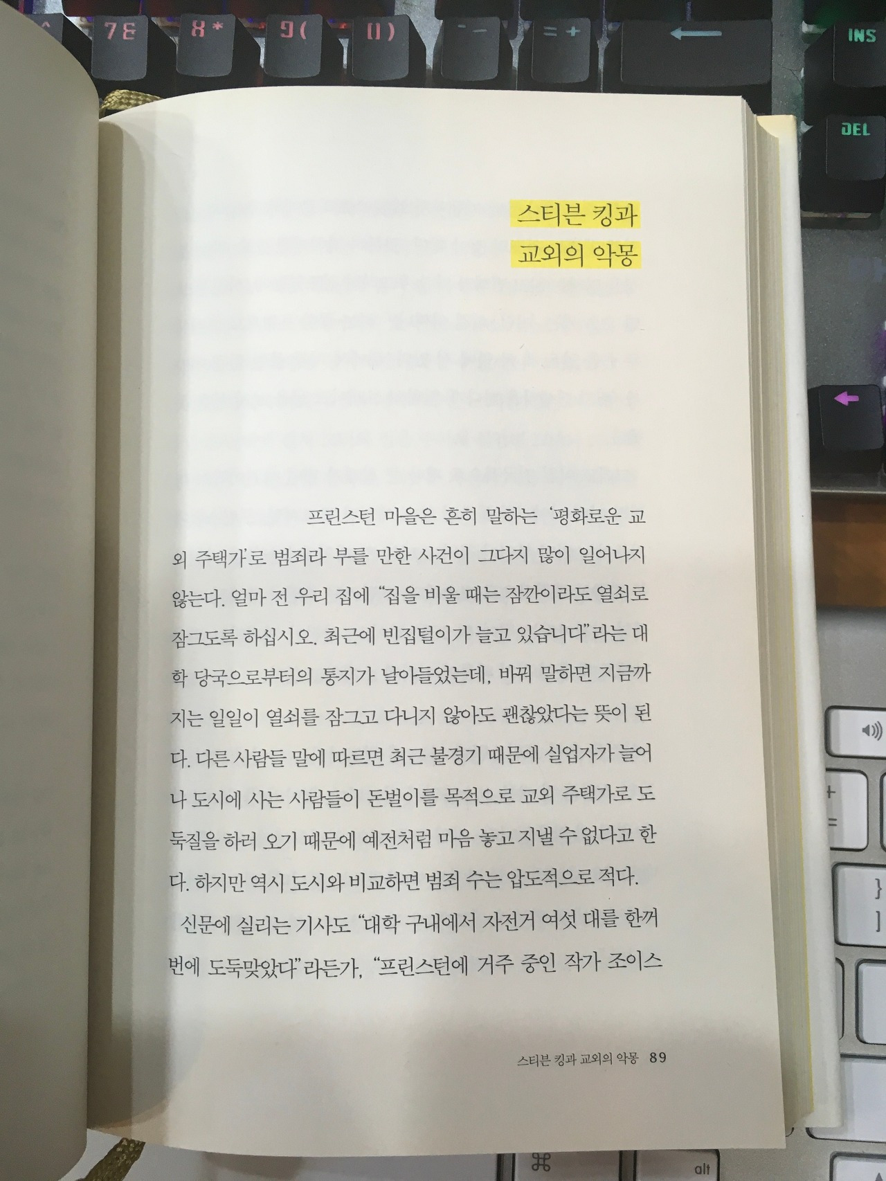 그 애는 ‘마음의 파수꾼’에 깊게 빠져 있었다. 그리고 도로시를 향한 루이스의 사랑이 겉으로는 정말 나쁘고 못된 짓이지만 그 애틋한 마음에 대해서 이야기를 많이 했다. 그러다가 루이스가 좀 더 멀쩡할까, 애니 윌킨스가 더 미쳤을까,에 대해서 이야기를 하기도 했다. 그러다가 스티븐 킹이 자신의 영화에 단역으로 나오는 것도 이야기를 했다.