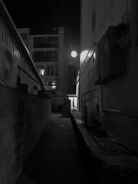 할 수 없이 닭을 포장해서 소주를 마신 것이 이 골목이었다. 버스정류장에서 내려 각자 헤어지기 좋을 장소였다. 나는 이쪽으로, 친구는 저쪽으로. 우리는 날이 추워지기 전까지 이 골목에 앉아서 이야기를 하고 집으로 갔다. 그러다가 소주를 한 번 마셨다. 무슨 이야기를 했는지 기억은 나지 않지만 이야기를 여기 이 골목에서 했던 건 기억이 났다.