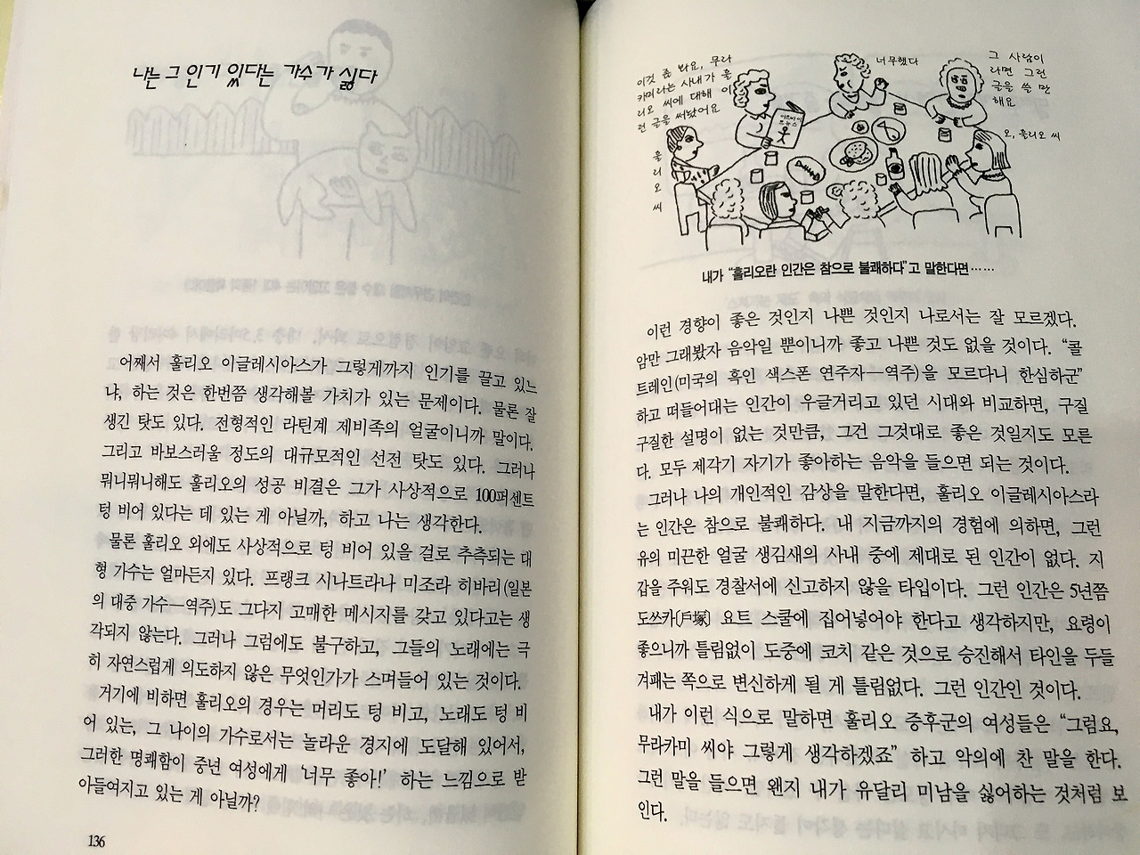 하루키는 에세이에서 ‘나는 그 인가 있다는 가수가 싫다’라는 챕터에서 홀리오 이글레시아스가 인기가 있는 이유는 멋지고 잘 생긴 탓도 있고 노래도 잘 부르지만 사상적으로 텅 비어 있다는 데 이유가 있는 것이 아닐까.라고 했다.