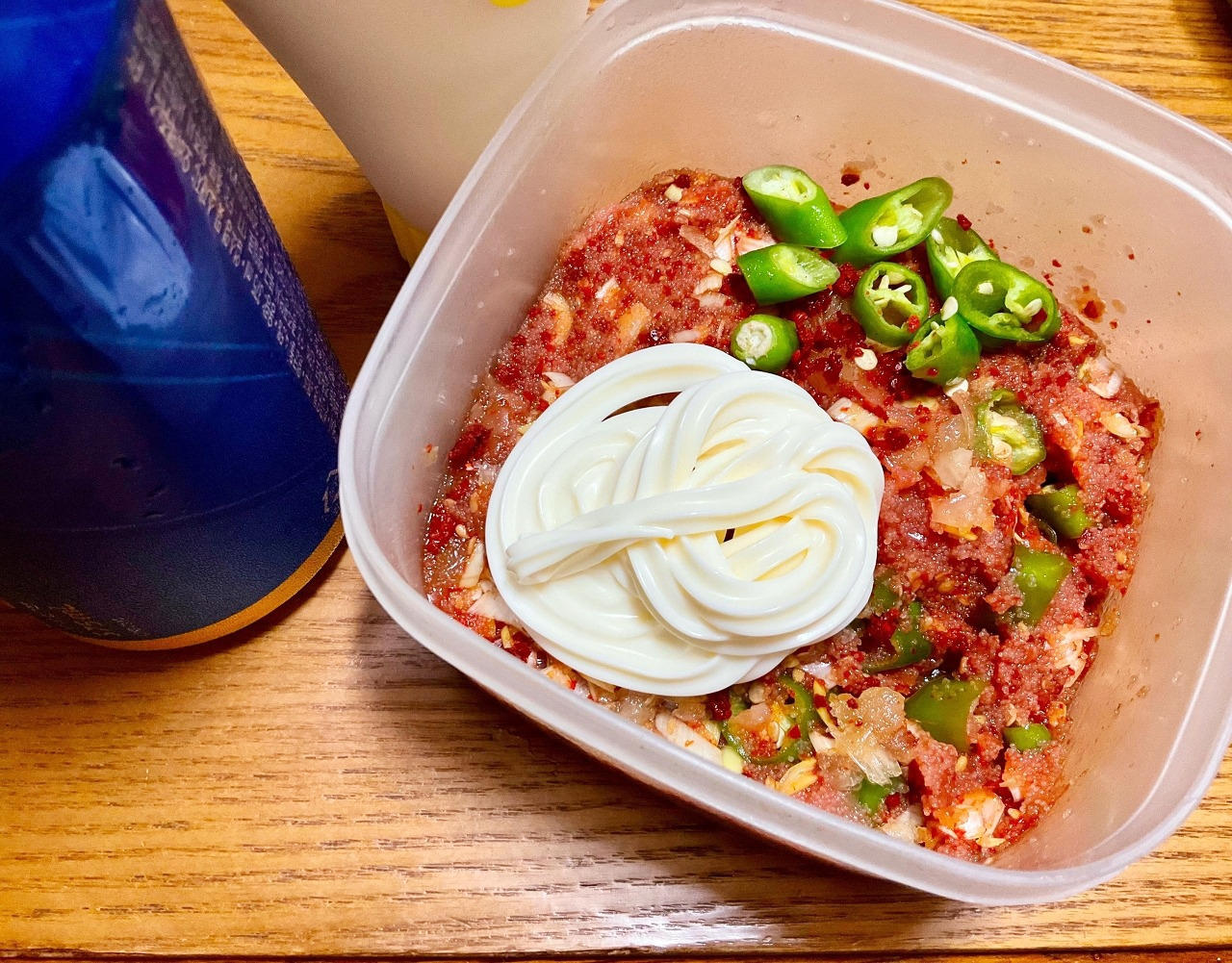 내가 좋아하는 고추무침에도 마요가 합쳐지면 고추의 맛이 더 맛있다. 그냥 맛있다. 넋을 놓고 먹게 된다. 그러니 너무 배고플 때 먹으면 안 된다.