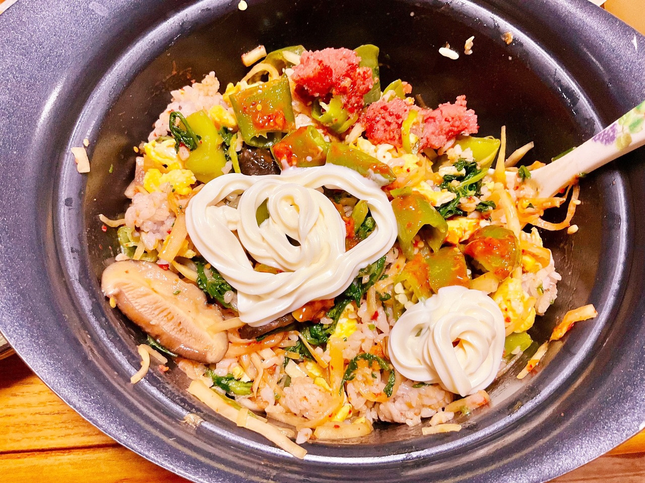 말해 뭐 해. 냉장고 털어 있는 반찬 넣어서 밥을 비빈 다음 마요를 뿌려서 먹는다. 팍팍 비벼서 먹어도 좋지만 마요 부분을 밥과 함께 숟가락으로 떠서 한 입 가득 먹는 그 맛이 좋다.