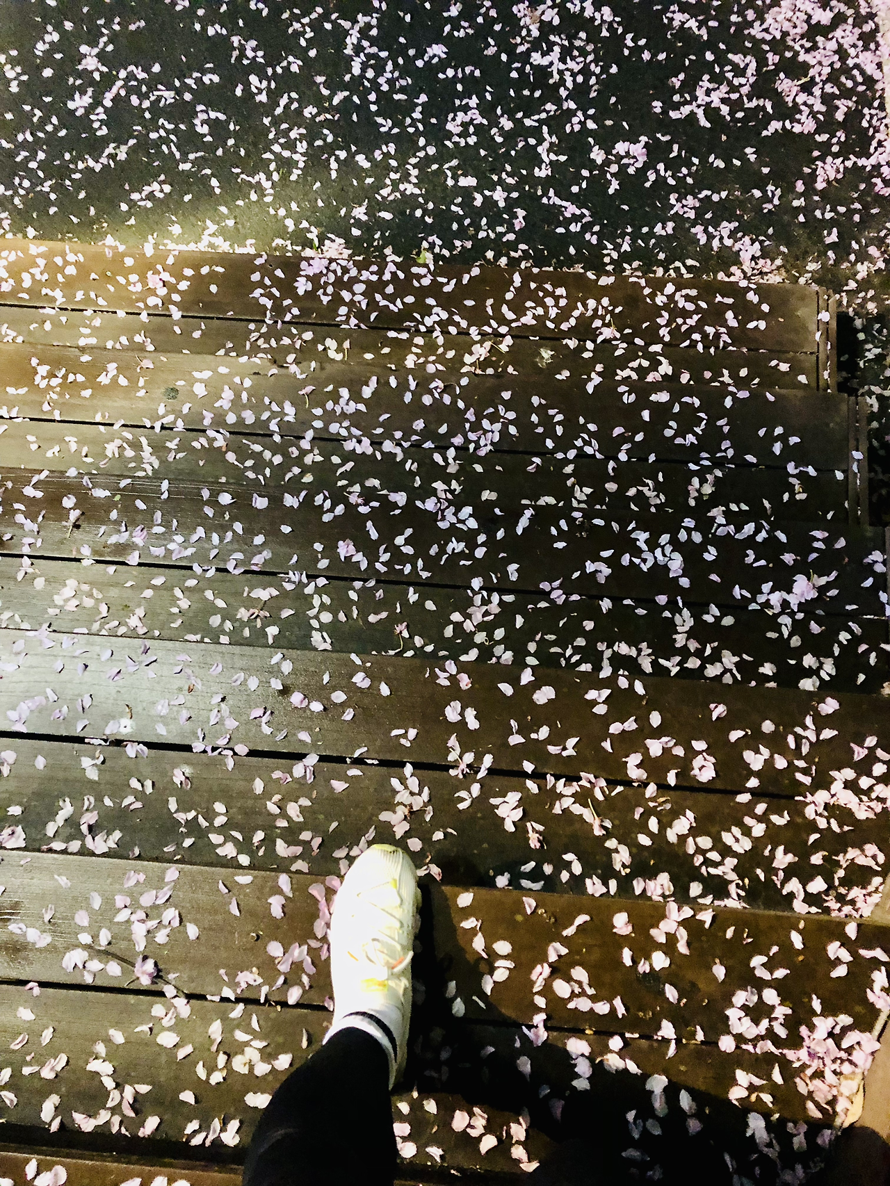 비가 오니 꽃잎이 전부 비바람에 떨어졌다. 흐드러지게 피더니 흐드러지게 떨어졌다. 그 위에 이렇게 서 있으면 꼭 소설 속에 등장하는 장면에 서 있는 것 같은 기분이다. 장르는 로맨스일 것 같지만 스릴러. 꽃잎이 떨어지는 봄에만 살인을 저지르는 한 사이코패스의 이야기.