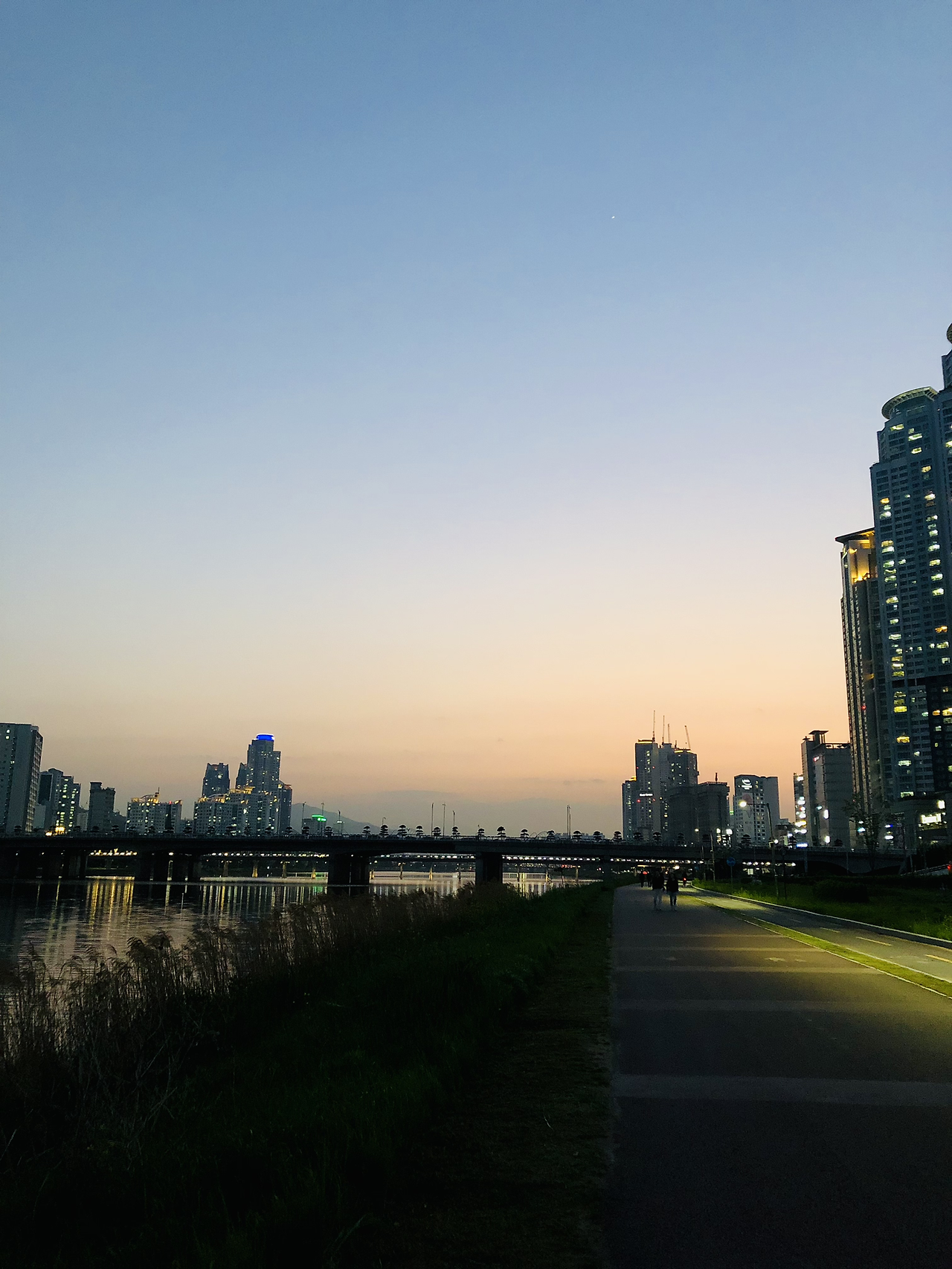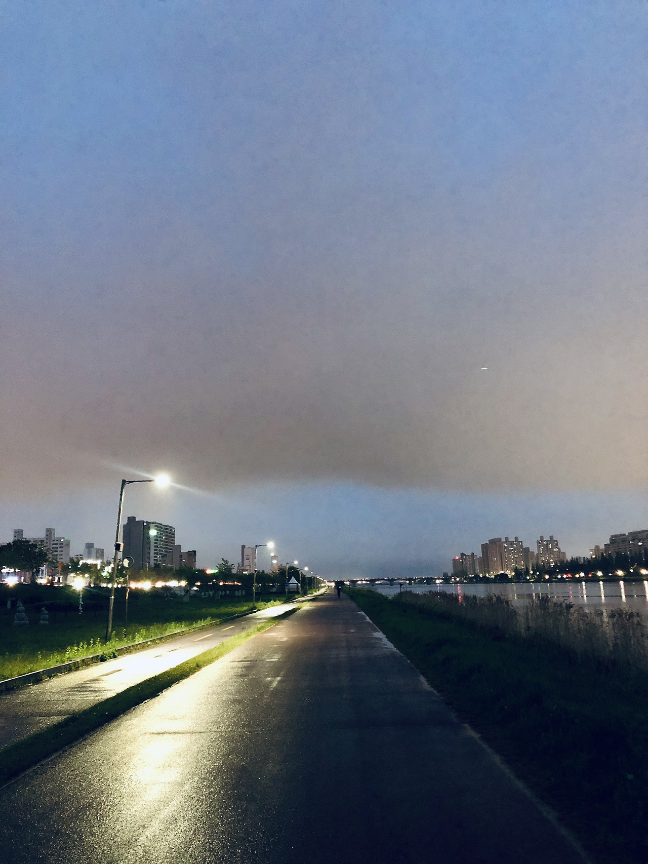 노을이 예쁜 날이었다. 자연은 늘 경이로운 색감을 보여준다. 하늘의 색과 노을의 색과 그리고 그들이 만나는 경계의 색이 예술품처럼 펼쳐진다. 매일 볼 수 없어서 이 아름다운 마법의 풍경이 펼쳐질 때면 한참을 바라보다가 조깅을 한다.