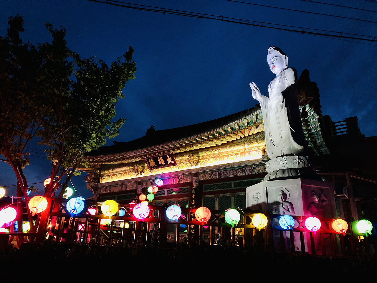 이제 곧 초파일이다. 저렇게 서 있는 불상의 모습을 보면 꼭 저 손으로 딱밤을 때릴 것만 같다. 나는 종교는 없지만 굳이 선택을 하라면 불교를 선택하지 싶다. 절에서 나는 향냄새가 너무 좋고 이 근처에서 조금 나가면 있는 통도사의 사찰을 둘러보는 것이 아주 좋다. 그런 분위기가 있다. 내가 제일 좋아하는 절은 불영사로 거기는 비구니들만 있다. 통도사도 그렇다. 외할머니를 따라 어린 시절에 불영사를 가곤 했다. 계곡도 좋고 뭐 그런 분위기가 좋다. 그리고 절밥도 맛있다. 요즘 어떤 사찰에서는 전문적으로 절밥을 내오면서 콩으로 고기맛이 나게 하는 식단을 주는데 그냥 고기를 먹자. 고기맛이 나는 콩요리를 먹어야 한다니. 너무 이상하다. 닭볶음탕도 이상한 이름이다. 닭볶음이면 볶음이고, 탕이면 탕이지, 닭볶음탕이라니. 그냥 닭도리탕 해라. 닭도리탕 하면 머릿속에 요리가 자연스럽게 떠오르는데 닭볶음탕은 보이지가 않아. 부처님 앞에서 고기 이야기나 하고 있다니 죄송합니다.