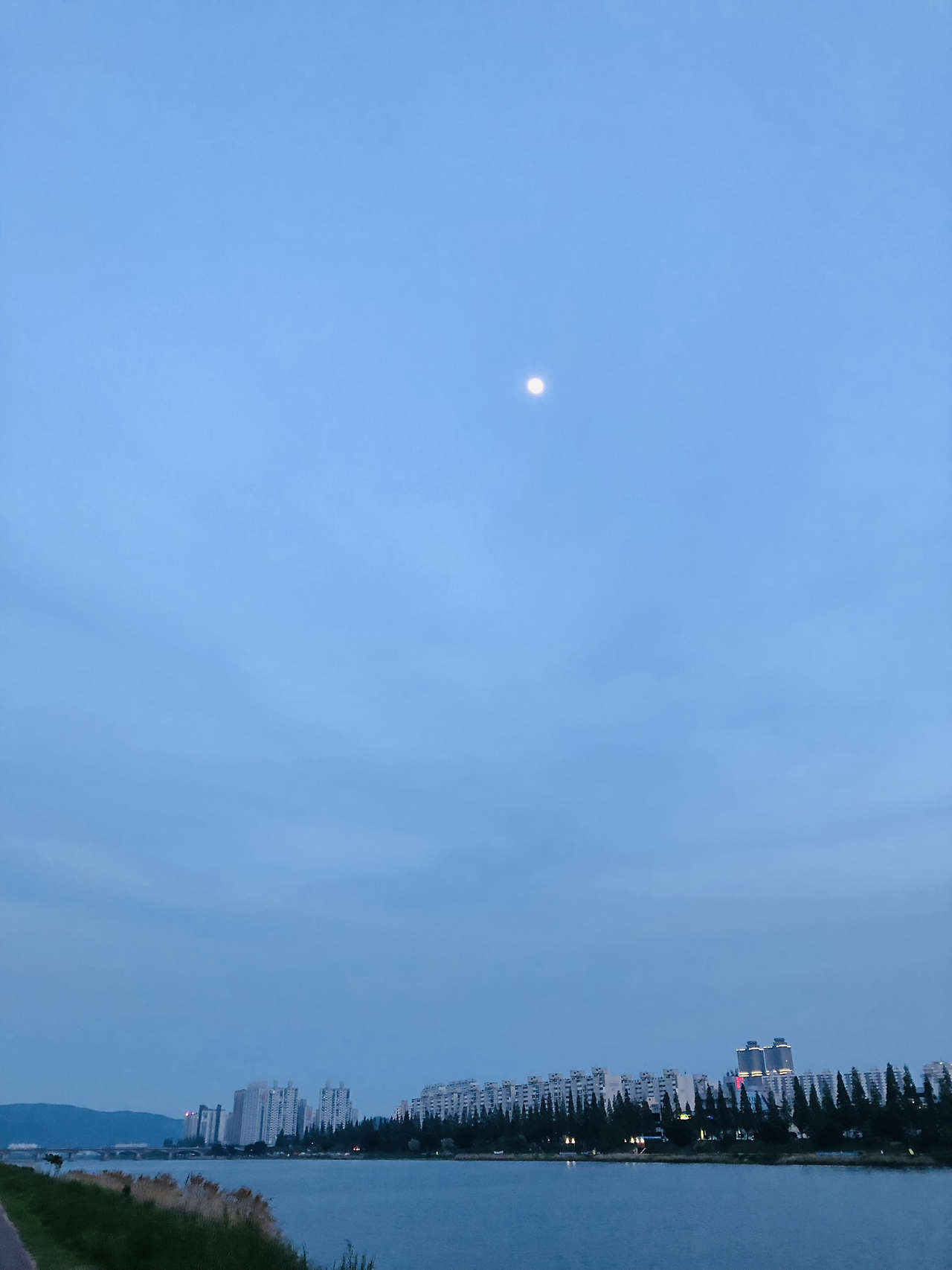 일교차가 심한 날이다. 저녁에는 쌀쌀하다. 그래서 사람들도 별로 나오지 않았다. 달이 반대쪽에 떠 있지 않고 저기 보이는 하늘에 떠 있다는 말은 지구와 달이 조금 가까워졌다는 말이다. 아마도 그럴 것이다. 6월이 되면 지구와 달이 제일 가까워지는데 그때 방귀를 뀌면 방귀소리가 평소보다 크게 들린다. 그게 바로 지구와 달이 가까워져 조수간만의 차가 심해지면서 생기는 현상이라는 말은 새빨간 거짓말이고.