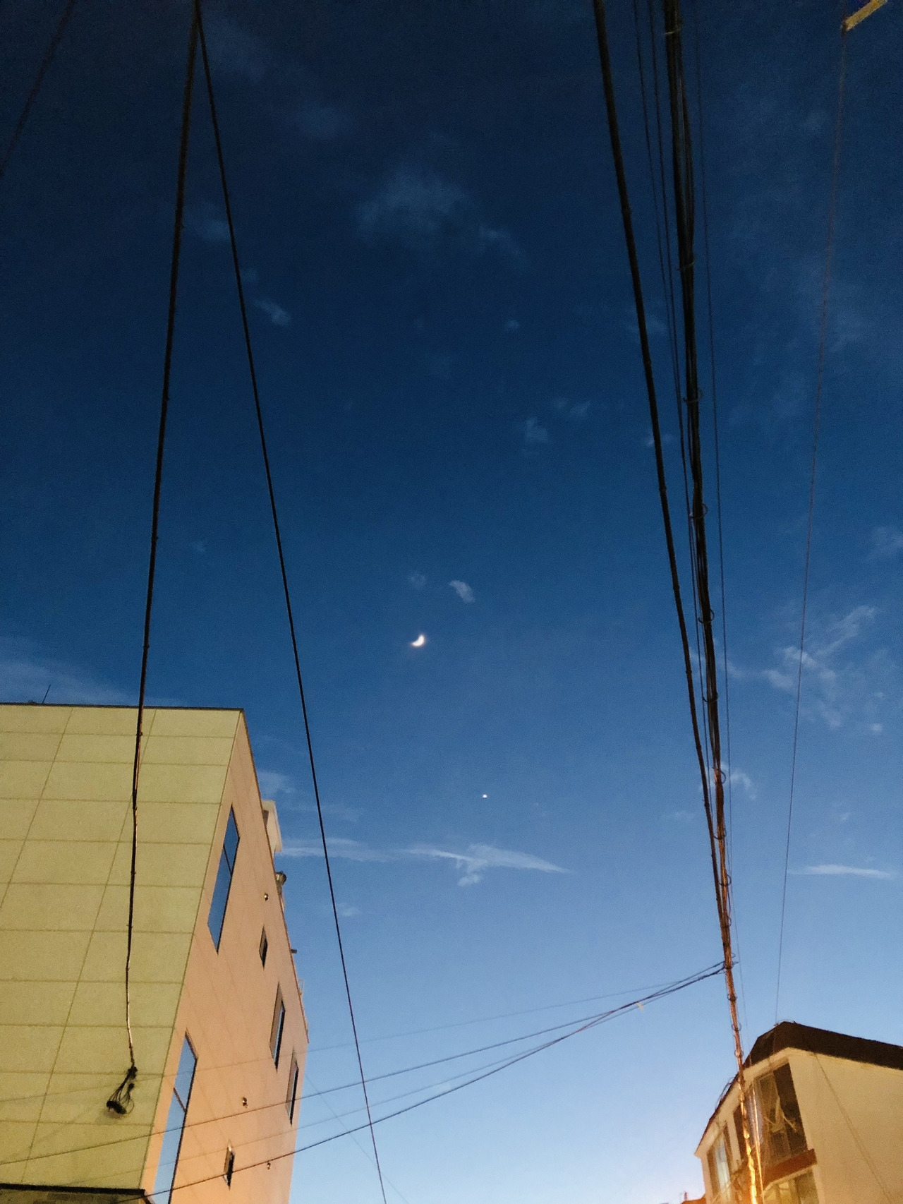 이렇게 유랑하는 달의 모습을 담을 때는 단렌즈인 아이폰 8을 원망해 본다. 최신 휴대폰이라면 이 모습을 너무나 예쁘게 담을 수 있을 텐데.