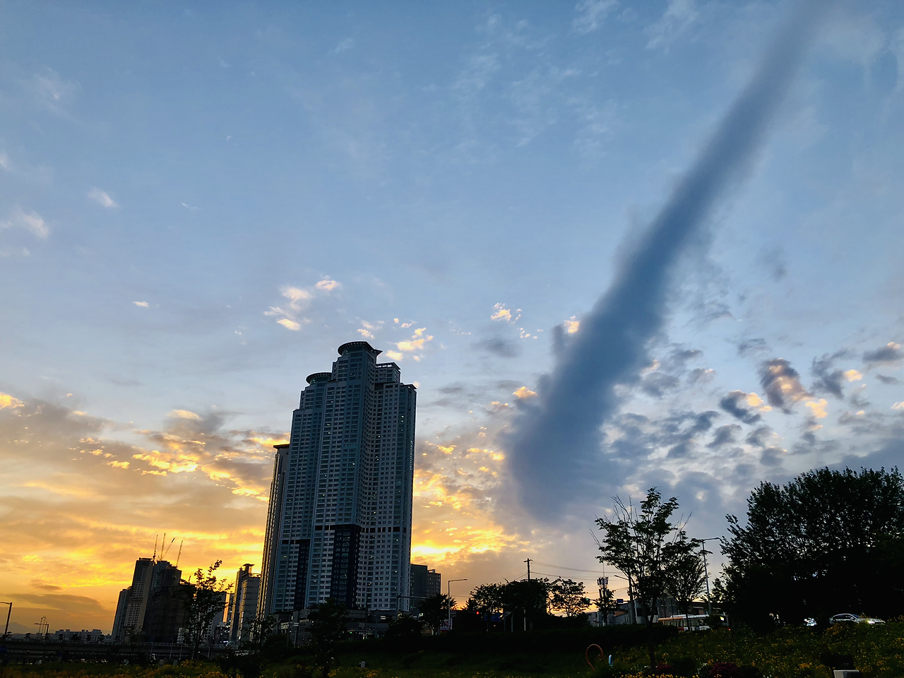 구름이 또다시 그림을 만들어냈다. 놓칠 수 없는 풍경이다. 아무리 노력해도 작은 희망이 없어서였을까. 별이 궤도에서 또 이탈해서 나 돌아갈래, 하며 한 번 멋지게 폭발을 하며, 셀 수도 없을 만큼 수억 개의 별 중에 존재를 각인시키고 사라진 별의 흔적일까. 이럴 때 김중식 시인의 시 ‘이탈한 자가 문득’이 떠오를 수밖에 없다.