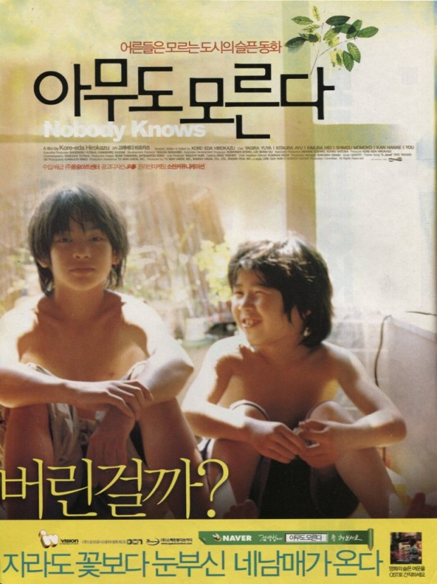 '나의 아저씨' 마지막 회를 보면 기훈이가 동훈에게, 이 영화 ‘아무도 모른다’에 대한 이야기를 한다. 5분 보다가 꺼버렸다고. 가정의 가장 오빠가 12살인데 동생들을 위해 다니면서 구걸하는 모습이 너무 불쌍해서 못 보겠더라고. 내가 티브이 속으로 들어가서 애들을 꺼내오고 싶다고.
