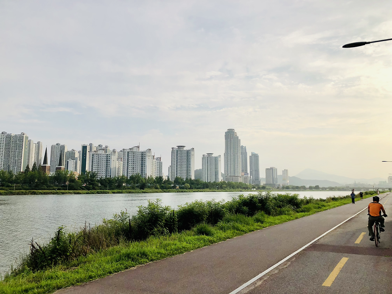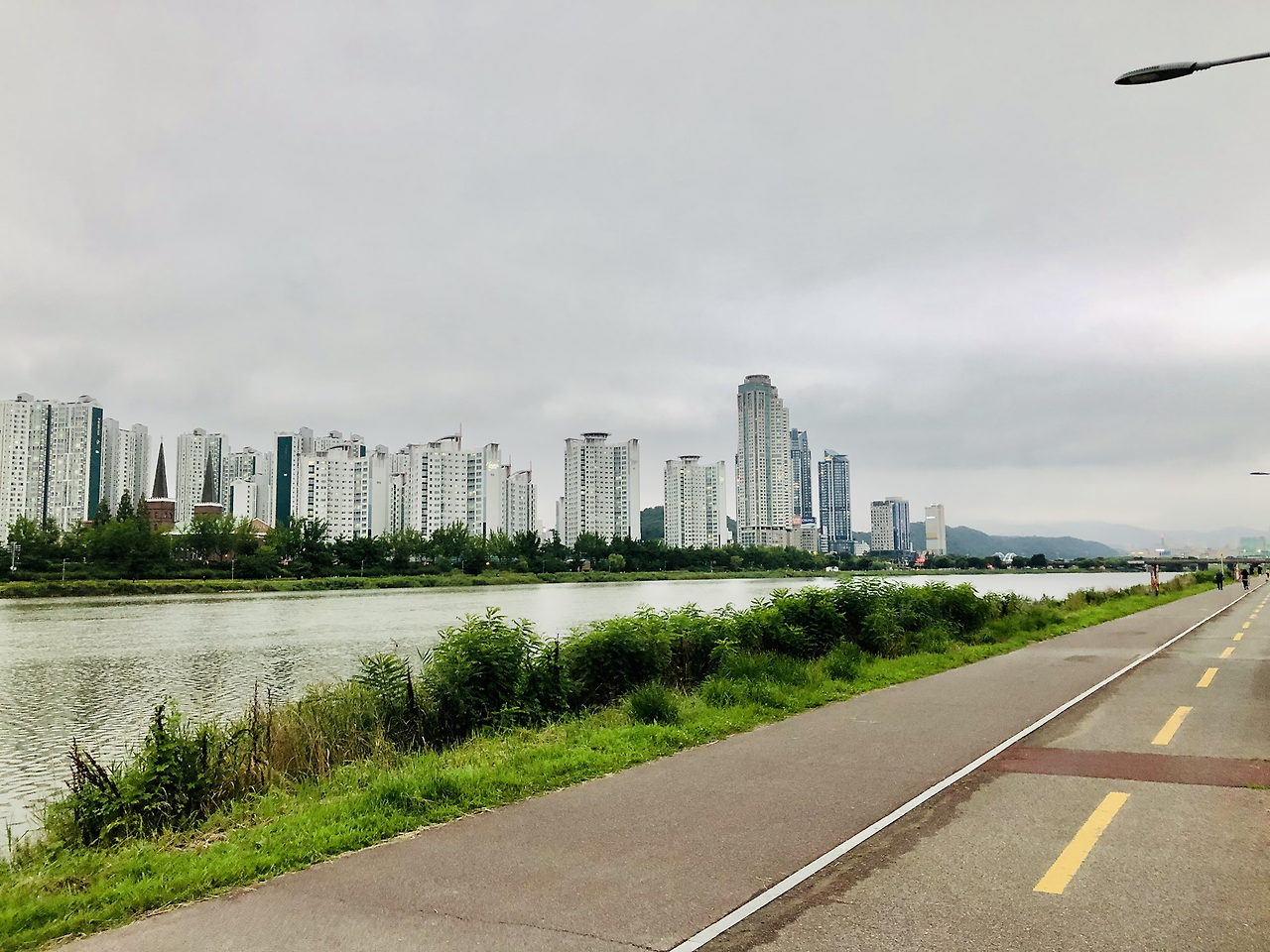 장마기간이지만 비가 오지 않는 날도 많다. 같은 강변의 비슷한 시간인데 비가 오나 비가 오지 않는 날도 사진으로는 왜 이렇게 비슷하게 보이냐.