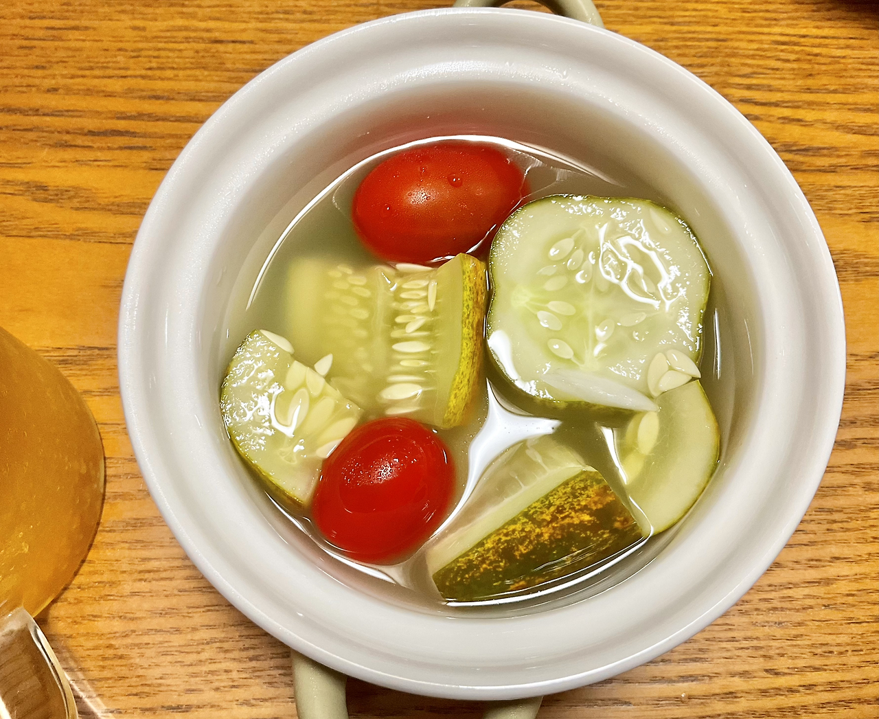 오이냉국으로 만든 오이는 아삭아삭 씹어 먹는 맛이 좋아서 자꾸 먹게 된다. 맥주와 먹기에도 좋다. 이렇게 시원하게 국을 만들어 먹기 좋은 건 콩나물국도 그렇다. 콩나물만으로 만든 슴슴한 국도 뜨거운 것보다 냉장고에 넣어뒀다가 꺼내 마시는 시원한 콩나물국이 좋다. 시원한 콩나물국은 겨울에도 좋다. 뜨거울 때는 잘 못 느끼는 간간한 맛도 시원하면 느낄 수 있다.