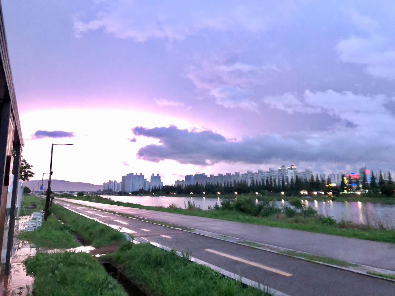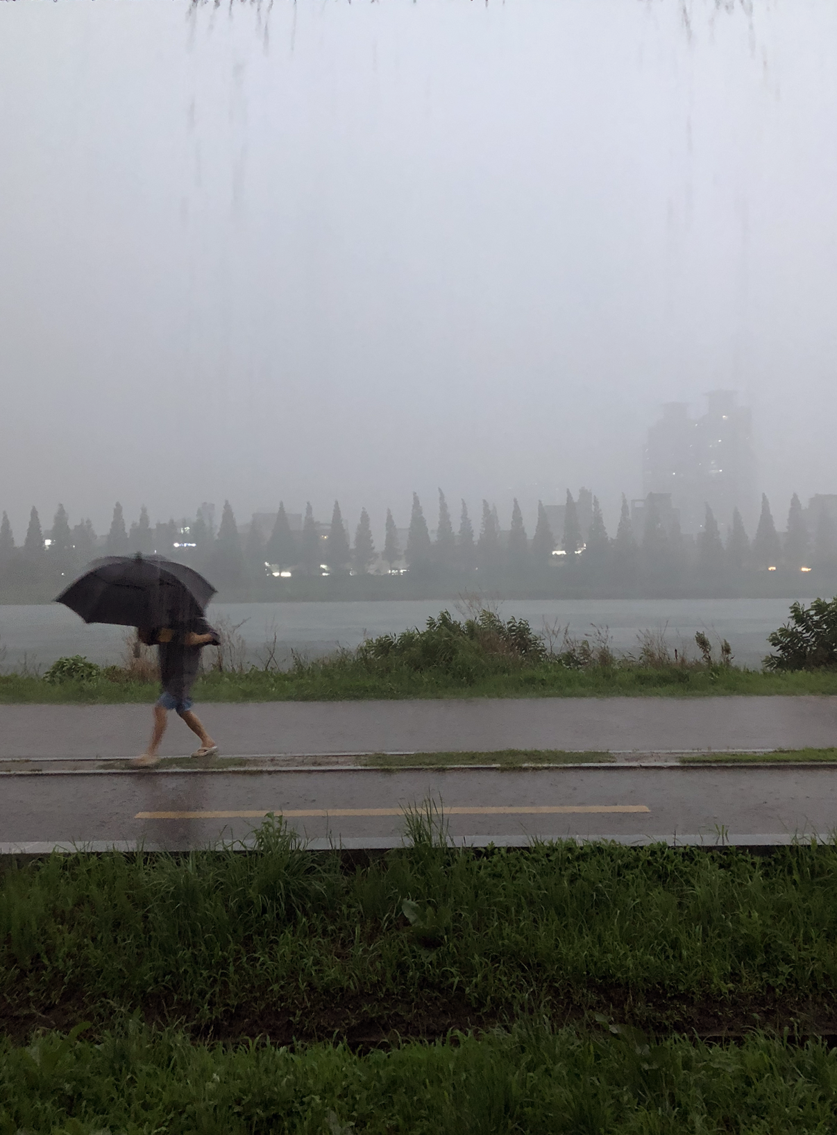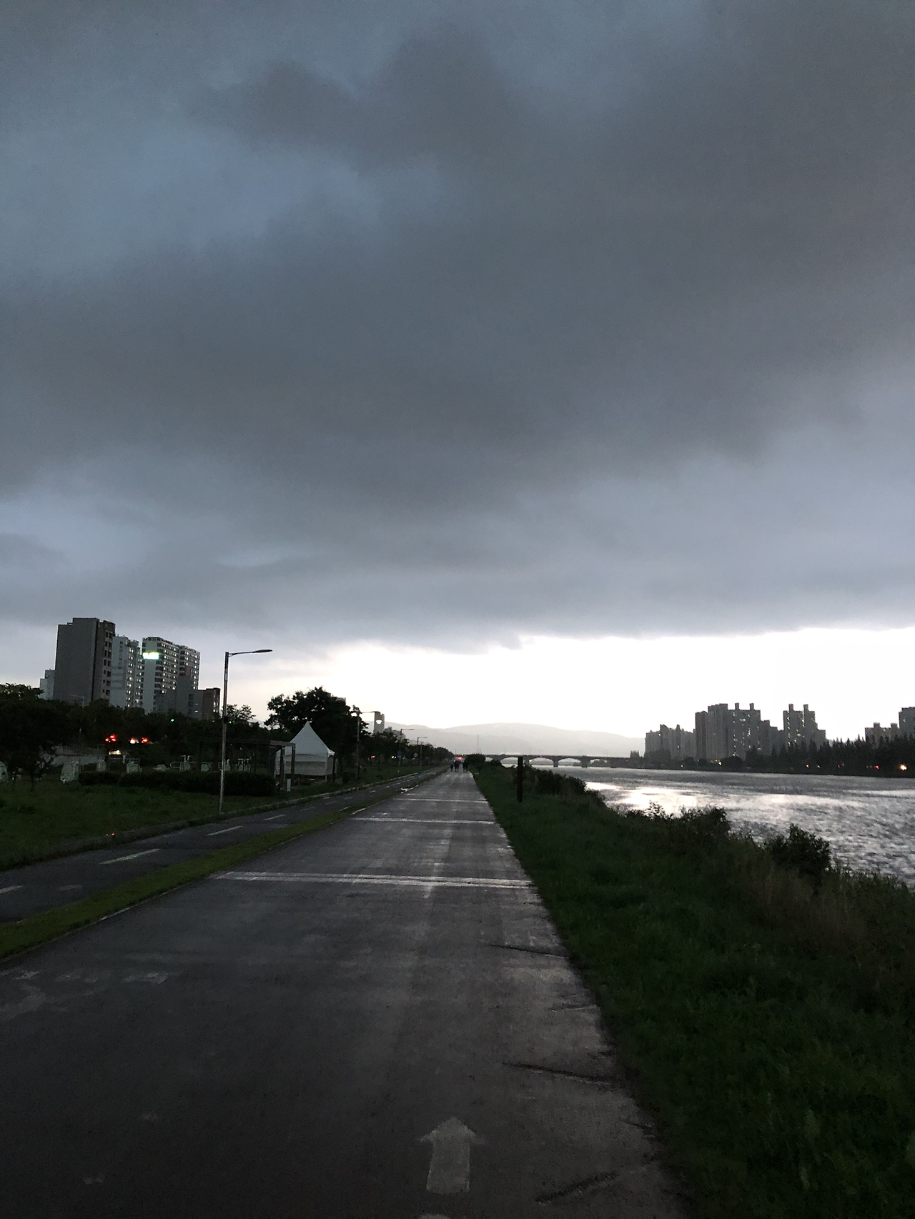강력한 태풍이 오지 않는 이상 매일 비슷한 시간이 되면 강변을 한 시간 반 정도 달린다. 그날도 비소식이 있었지만 약간 내릴 거라는 소식을 보고 강변으로 나갔다.