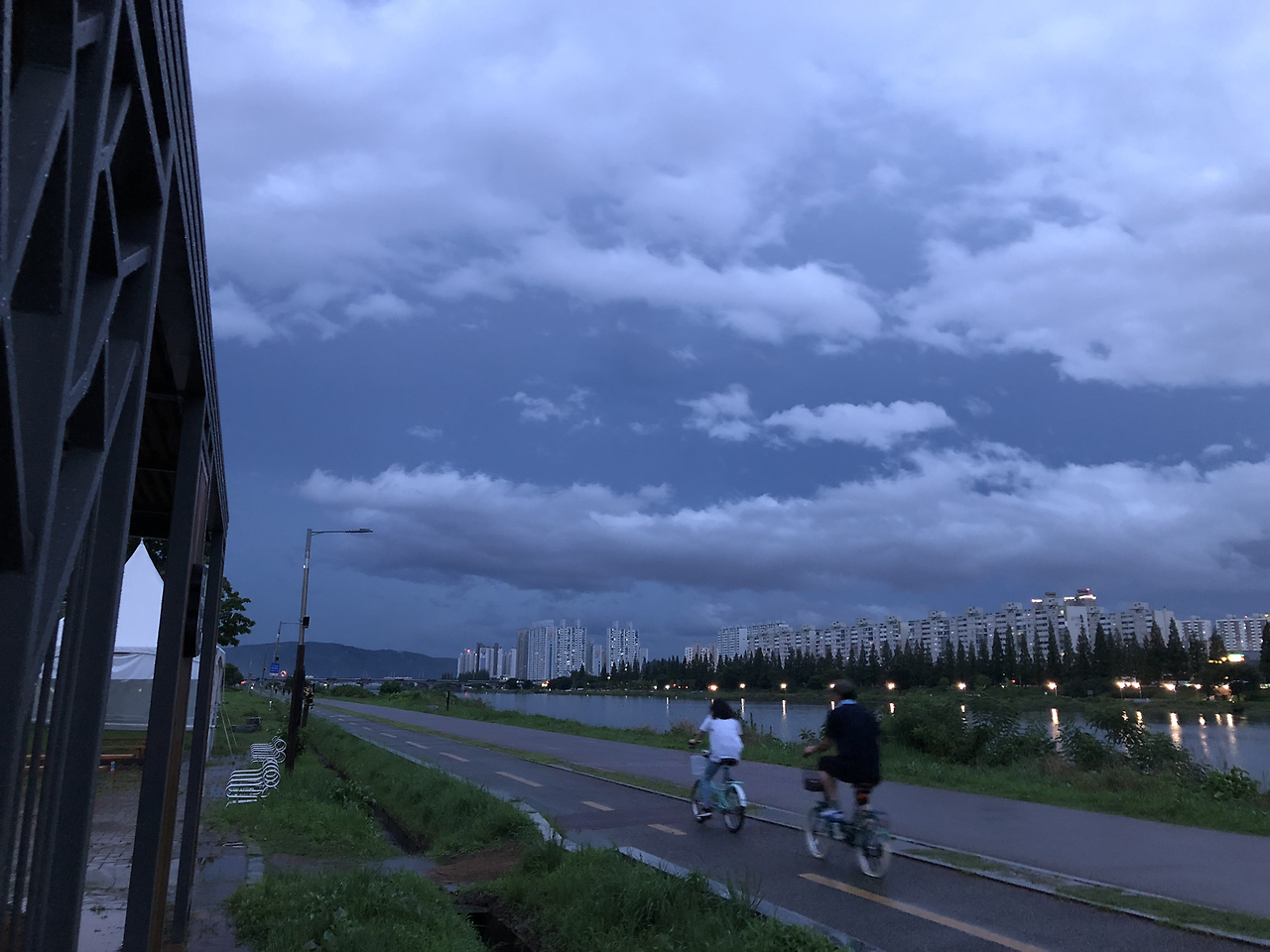 레인시즌이라 흐렸지만 보통의 흐린 날과 다를 바 없는 날이었다. 구름이 많고, 7시 정도에는 아직 여름 해가 떠 있어야 하는데 해가 없는, 그런 날이었다. 사람들도 강변으로 나와서 산책을 하고 자전거를 타고, 조깅을 했다.