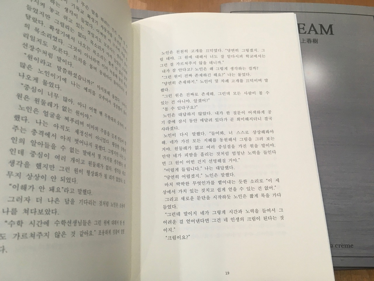 그래서 크림을 번역해서 책자로 만들어서 들고 있다가 나중에 ‘일인칭 단수’가 출간되었을 때 날름 구입해서 비교를 해보았는데 너무나 허무하게 비슷해서 맥이 풀렸다. 이게 뭐랄까 하루키의 소설을 많이 읽고 또 읽고 – 나 같은 재미없는 인간은 새로운 무엇을 보고 듣고 느끼기보다 읽었던 소설을 또 읽고 자꾸 읽는다, 계속 읽다 보니 하루키 소설의 분위기를 알게 되었나? 싶은 생각이 들었다.
