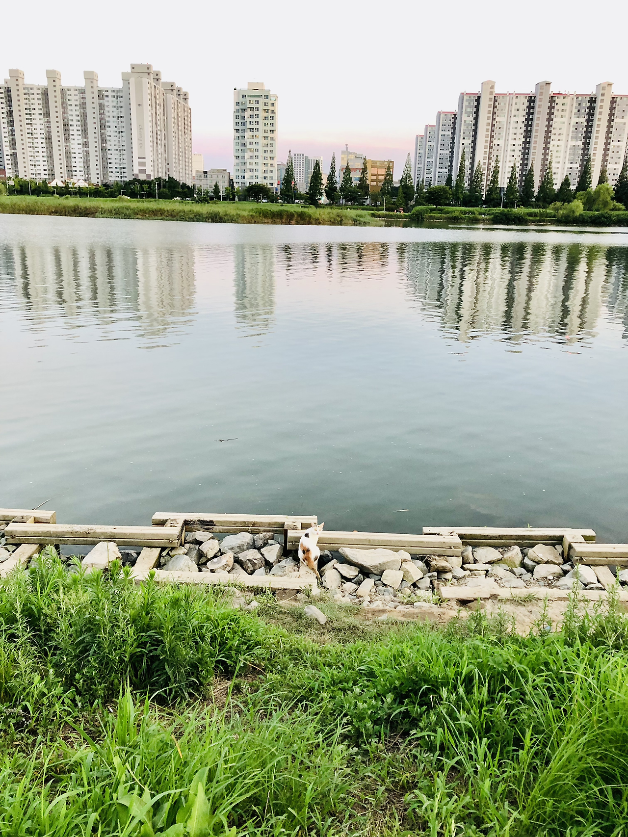 그렇지만 고즈넉하다. 이렇게 서서 천천히 흐르는 강물을 바라보고 있으면 불안에서 조금 멀어질 수 있다. 길냥이 녀석도 강을 바라보다가 내가 사진을 찍으려고 하니까 고개를 돌려 뭐야? 니? 같은 표정으로 바라보았다.