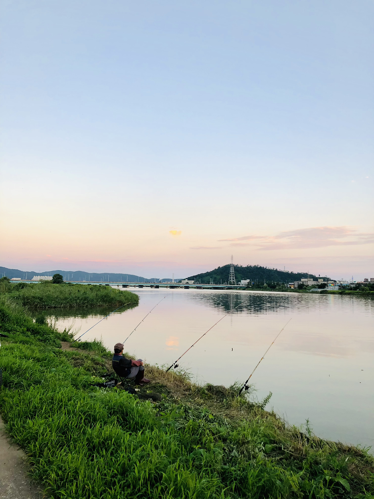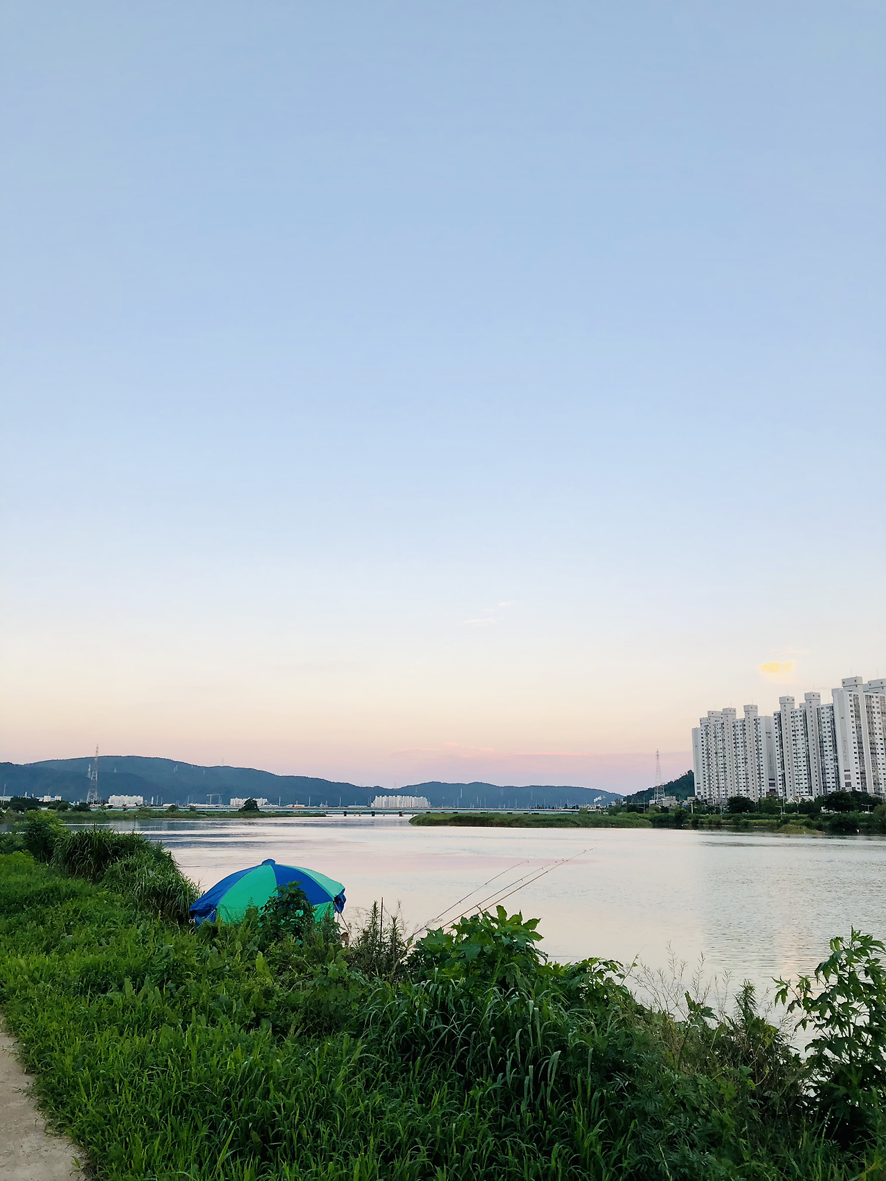 오늘도 저녁에 조깅을 하고 돌아오는 풍경은 고즈넉했다. 아주 평온하고 편안하게 보였다. 나는 조깅을 해서 땀이 뻘뻘 났지만 가만히 서서 고즈넉한 풍경을 잠시 감상했다. 낚시꾼의 모습은 고기보다 세월을 낚는 모습처럼 보였다. 일희일비하지 말자,라고 하는 것처럼 보인다. 평일에 하루종일 낚시를 하려면 아무래도 쉬는 날이거나 일을 하지 않거나 둘 중에 하나일 것이다. 나름대로 개개인의 사연이 있을 것이다. 2, 3년 전의 이맘때 저녁 시간에는 아주 붉은 노을이 하늘을 덮었는데 올해 여름은 습도가 높고 습기가 가득한 우기 속의 나날들이 많았다. 그래서 조깅을 하면 땀이 어마무시하게 흐른다.