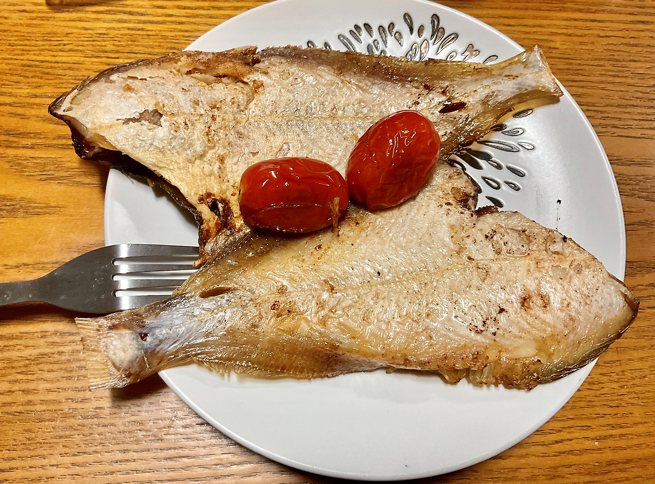 구을 때 방울토마토도 같이 구우면 좋다. 토마토는 한 15개 정도를 같이 굽는다. 토마토에 가자미의 쿰쿰한 비릿함이 기름과 잘 버무려져서 토마토 역시 풍미가 확 난다.