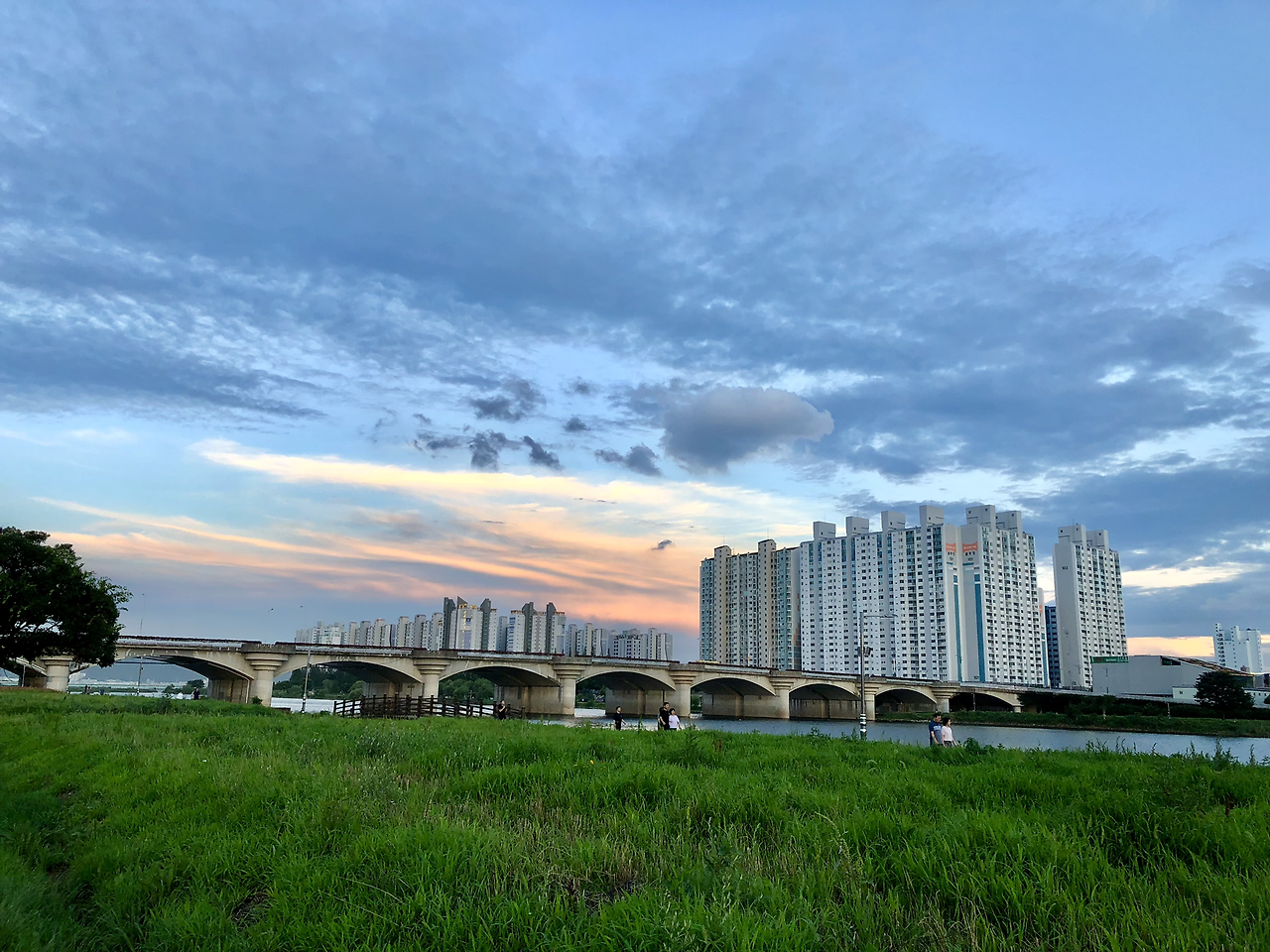 무슨 일을 하는지, 어디에 사는지, 어디에서 오는지 아무것도 모르고 궁금하지도 않다. 그저 저 사람도 매일 이 시간에 나와서 달리고 있구나,라는 마음으로 서로 지나칠 때 인사를 주고받는다. 겨울의 저녁과는 달리 여름의 저녁에는 하늘과 풍경이 경이롭게 보인다. 그런 모습이 매일 달라진다.