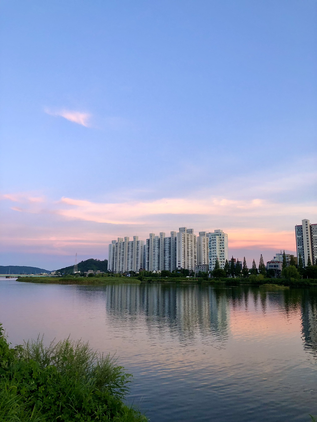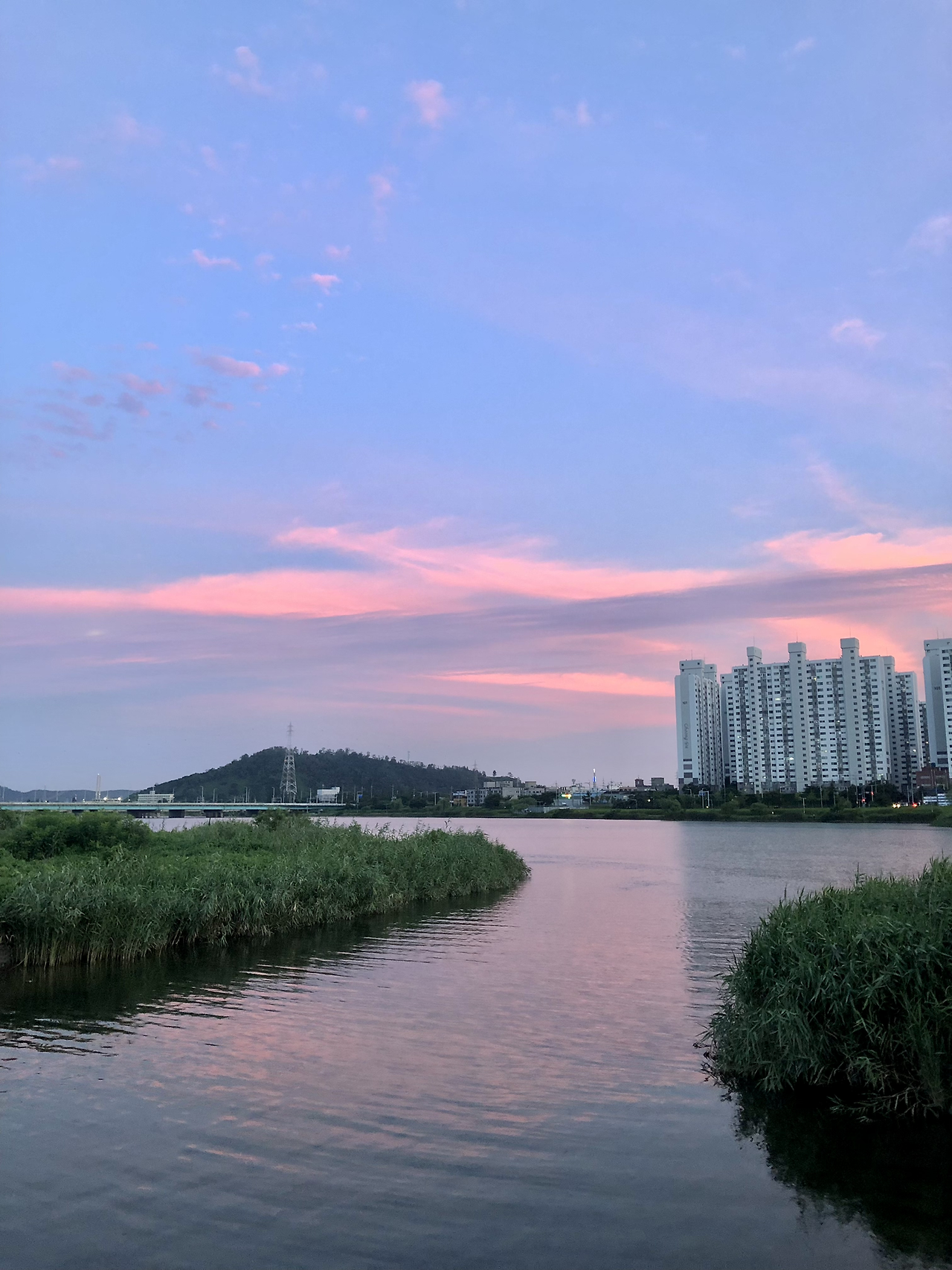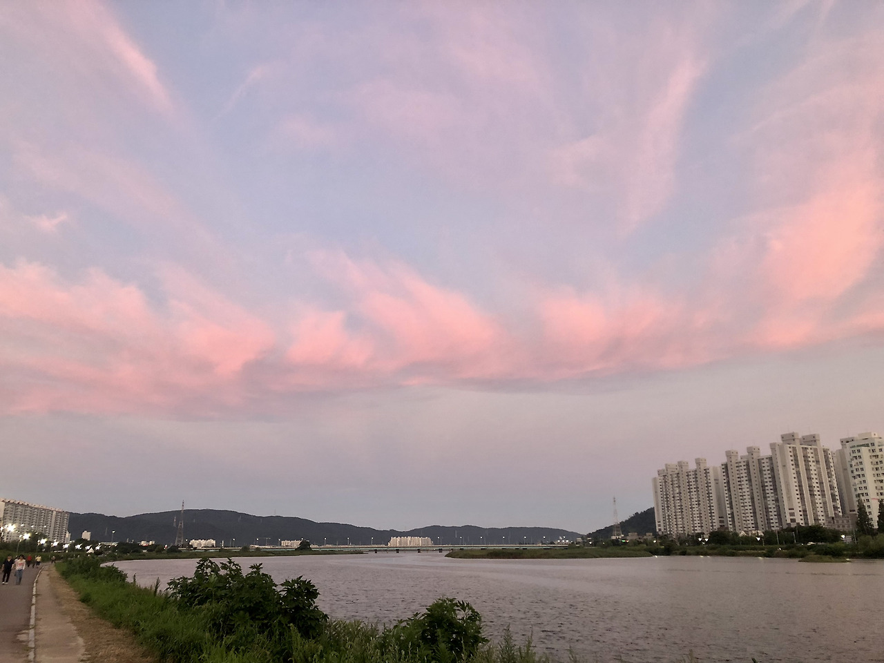 저기는 바다가 있는 곳으로 동해, 동쪽이라 노을은 아닐 텐데 워낙 더워서 일까. 아직 저 붉은빛이 남아서 아름다운 하늘을 만들어내고 있다.
