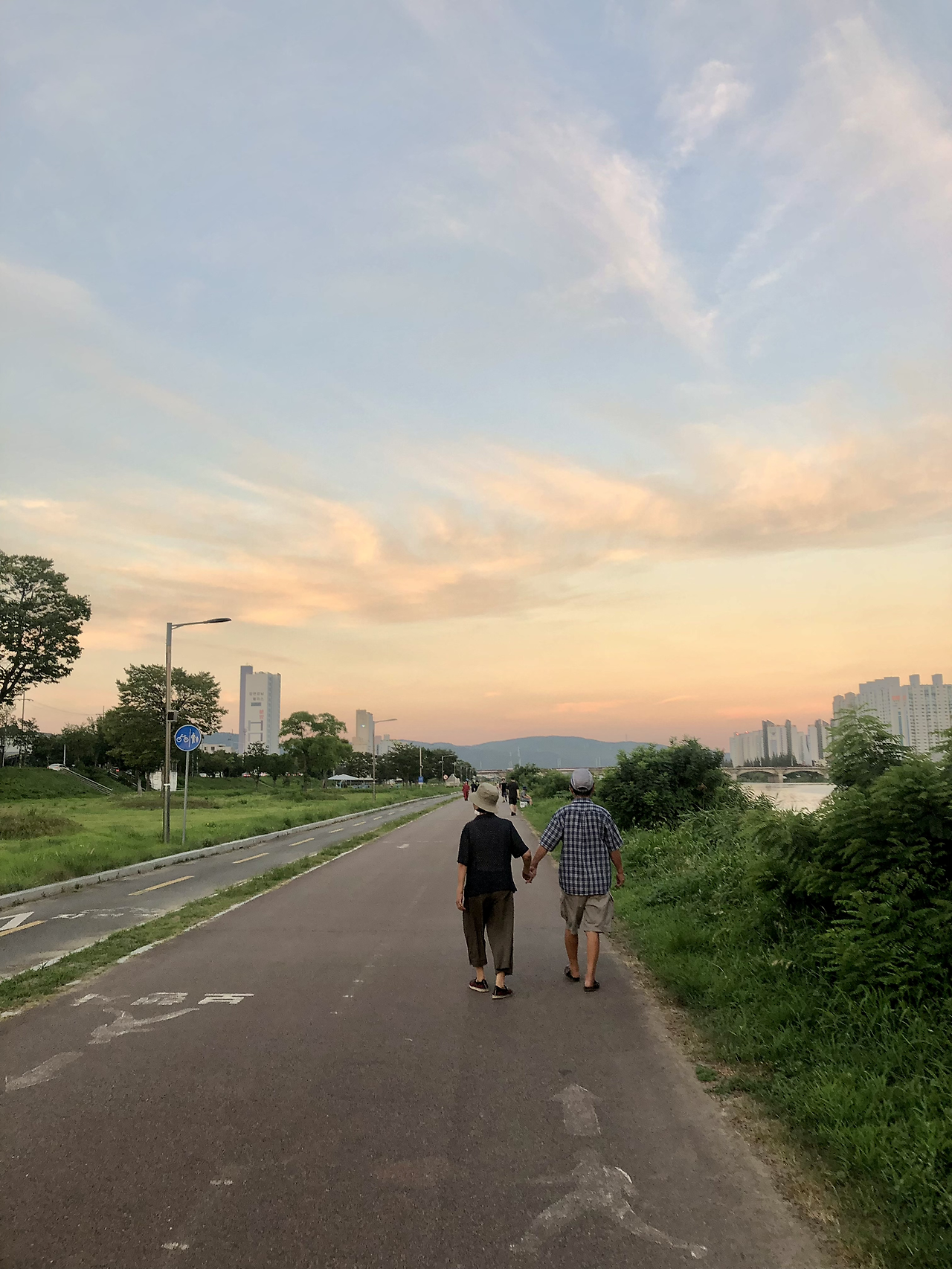 조깅을 하는데 앞에서 노부부가 손을 잡고 함께 산책을 하는데 너무 아름다운 모습이었다. 노년에 같이 손을 잡고 산책을 할 수 있는 부부가 몇이나 될까. 모르는 이들이 서로 만나 가족이 되면 쉬울 리가 없다. 내일도 행복하세요.