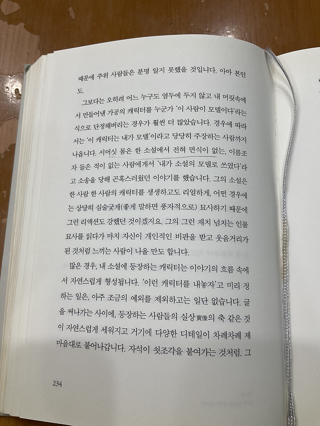 하루키는 소설 속 등장하는 캐릭터는 이야기의 흐름 속에서 자연스럽게 형성된다고 했다. 이런 이야기를 듣는 게 하루키 에세이를 읽는 최고의 재미이자 알 수 없는 희열을 느낀다. 그리고 위에 서머싯 몸의 예도 들었다. 서머싯 몸은 한 소설에서 전혀 면식이 없는 사람에게서 ‘내가 소설의 모델로 쓰였다’라고 소송을 당해 곤욕을 치렀다고 했다.