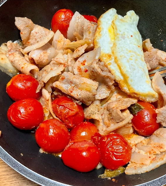예전에는 아버지가 늘 가는 식육점에서 삼겹살을 사 오셨다. 그 동네에 가면 아직도 식육점이 깔끔하게 단장을 해서 장사를 하고 있다. 대학교 때부터 내 입맛은 냉동 삼겹살 쪽으로 기울었다. 삼겹살은 소주와 함께 먹지만 잘 구워진 냉삼을 뜨거운 밥에 싸서 먹는 맛에 빠져들었다. 가격도 저렴하니까 좋았다. 오랜만에 냉삼을 방울토마토와 함께 프라이팬에 지글지글 구웠다. 구우면 다 맛있다.