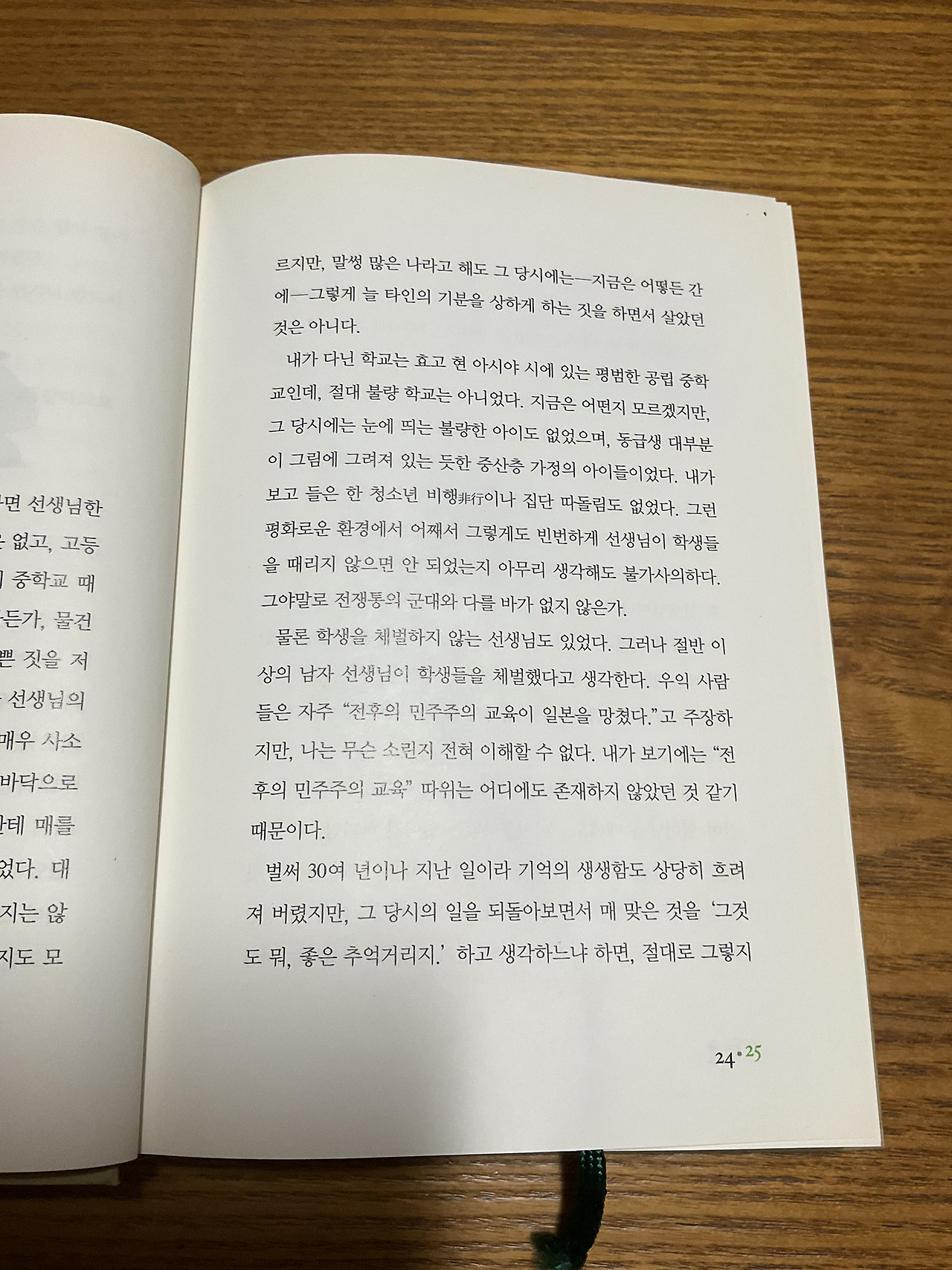 선생님한테 매를 맞는 건 일상생활의 일부가 되었다고 한다. 내가 고등학교 때에도 아이들은 선생님들에게 시도 때도 없이 맞았다. 맞아도 아이처럼 시간이 지나면 헤헤하며 잊곤 했다. 사실 몽둥이로 열심히 맞는 건 아이들이 잘 참고 뭐 그럴 수 있지 같은 분위기였는데 신문지를 돌돌 말아서 뺨을 때린다거나, 우산이나 드럼채로 머리를 때리면 기분이 몹시 나빴다.