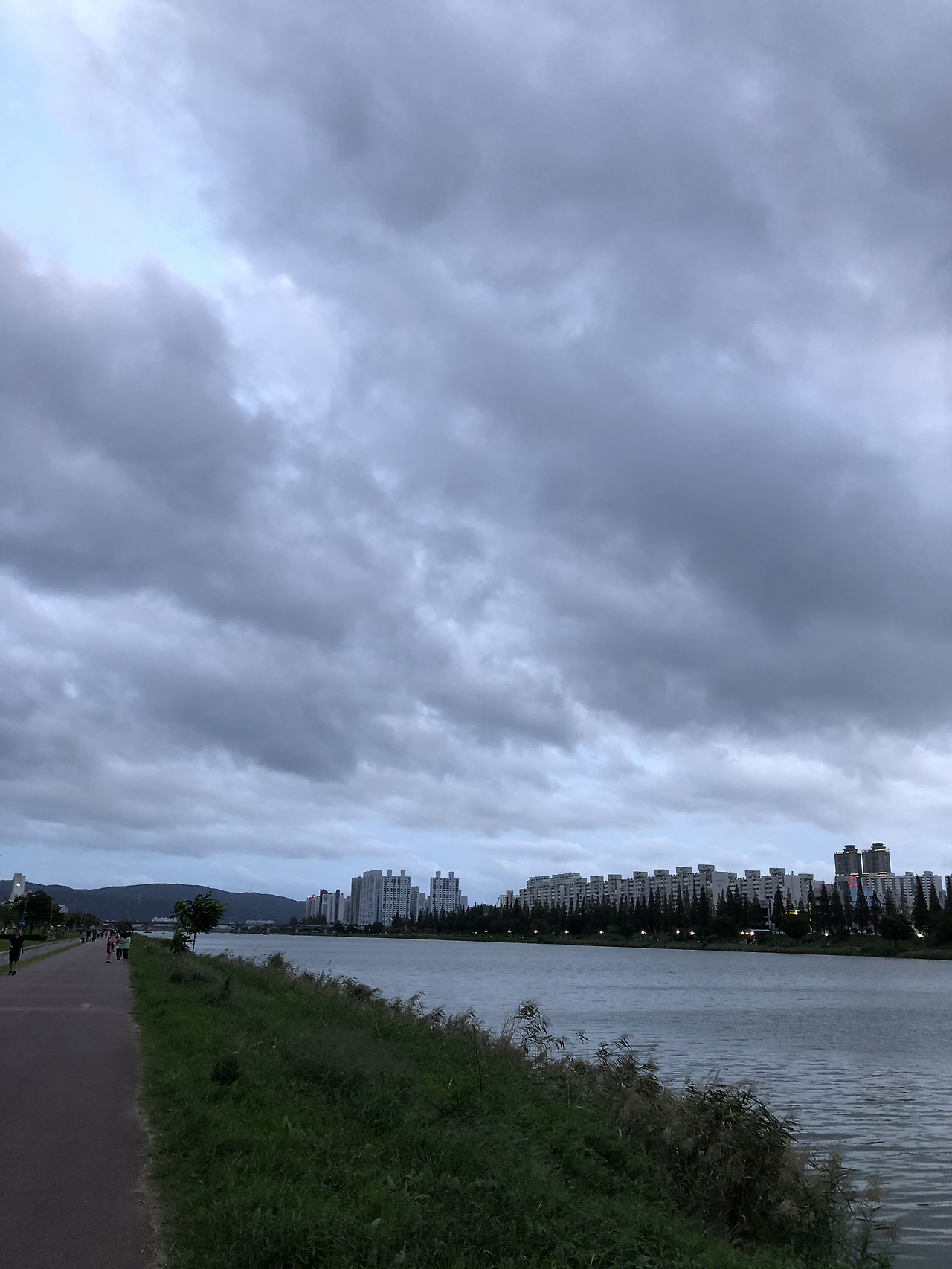 추석에 날이 흐리면 기온이 내려간다. 바람도 많이 불어서 조깅을 해도 땀이 금방 식는다. 그게 별로고, 밤이 되어 깜깜해지면 날이 흐려도 알 수 없어야 하는데 이상하게도 흐린 날의 밤은 흐린 밤이다. 컴컴해서 흐린 것이 느껴지지 말아야 하는데 밤하늘과 밤 풍경에도 낮의 그 흐린 기운이 가득하다. 그래서 뭔가 파이팅을 외치며 열심히 하려고 하는 것에 제동이 걸린다. 그래서 별로다.