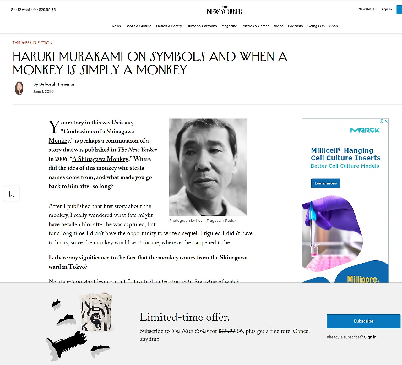 이 단편이 책자로 나오기 전 하루키는 뉴요커와 인터뷰를 가졌다. 인터뷰는 2020년 6월 8일에 진행되었다. 요약을 해서 올려봄.