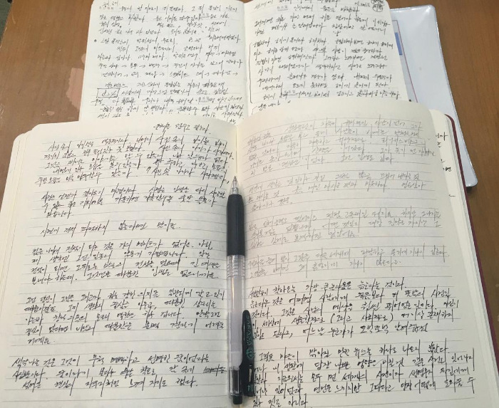 매일 열심히 뭔가를 적는 건 기기가 나오기 전이나 지금이나 비슷했다. 아이폰이 나오기 전에는 주머니에 작은 수첩과 불펜을 넣어 다녔다. 그러다가 뭔가가 생각이 나면 길거리라도 벽면에 붙어서 생각난 것들에 대해서 메모를 했다. 아이폰이 나오기 전에 아이팟 터치 3세대를 먼저 구입했다. 메모가 무한정이었다. 정말 그것 하나만으로도 다른 세상이었다. 자주 가는 카페에서는 그게 뭐냐며 신기해했고 소설을 읽다가 필사하고픈 문장은 메모장에 타이핑을 했다. 타닥타닥 하는 소리도 듣기 좋았다. 하지만 배터리가 금방 동이 났다. 그때부터 충전기를 들고 다녔다. 그때 구입한 충전기를 아직도 들고 다닌다. 그러다가 아이패드, 키보드 등 충전이 필요하다. 건전지를 넣어줘야 하거나. 편리해진 만큼 불안요소도 늘어난 것 같다. 충전의 굴레 속으로 들어와 버린 것이다.