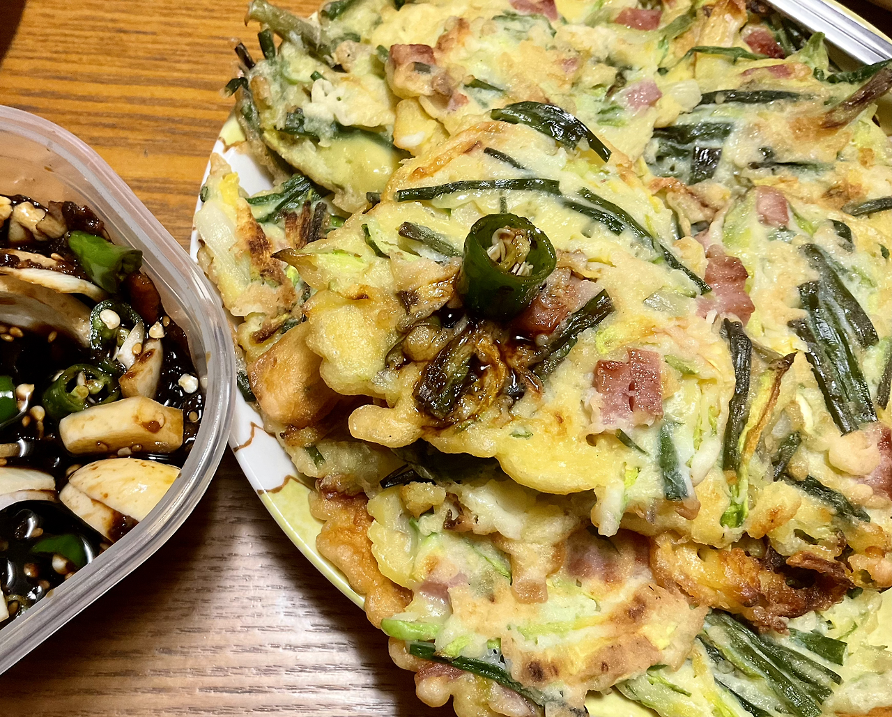 알감자를 먹고 개울에서 또 놀다 보면 저녁이 되거든. 산 속이라 여름이라도 빨리 어두워져. 아무리 폭염이 와도 그늘에 있으면 시원한 곳이 외가가 있던 불영계곡 속이야. 저녁이 되면 부추를 잔뜩 넣고 전을 구워주거든. 부추가 많이 들어 있어서 어릴 때는 먹기 싫지만 외가에서는 그것마저 맛있었지. 냠냠 오물오물 거리며 먹고 있으면 외할머니는 그 뜨거운 전을 손으로 떼서 입에 넣어주곤 하셨지.