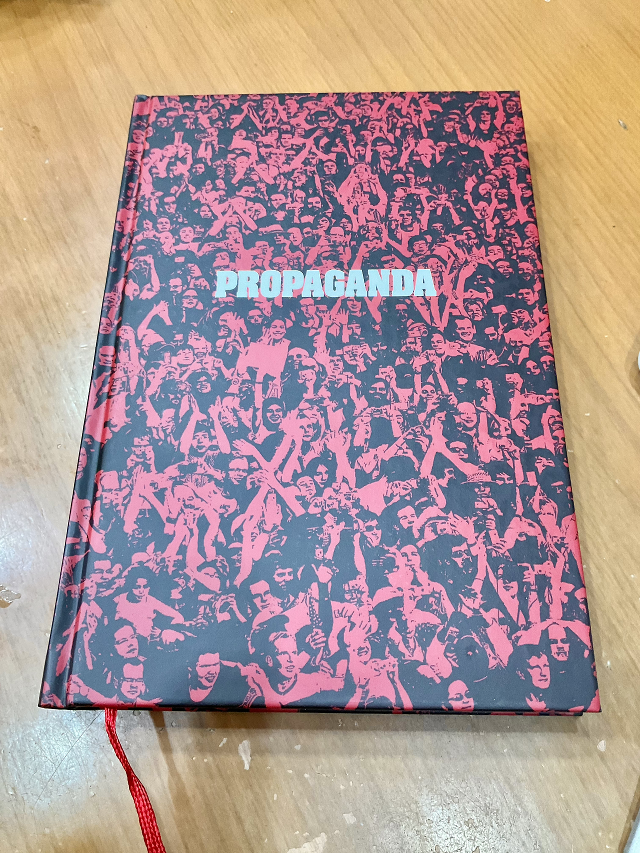 여기 ‘땡전뉴스’라는 게 있다. 모두가 봤을 ‘서울의 봄’의 그 전두광, 그가 집권했을 무렵, 밤 9시만 되면 뚜 뚜 뚜 땡 하면서 맨트가 “전두환 대통령~”라고 시작을 했다. 거의 신격화시켰다. 이렇게 신격화시키는 프로파간다 방법으로는 책에도 나오지만 거대한 그림 같은 것들이 있다. 북한의 김정은이 백마를 탄 그런 큰 그림이나 히틀러의 거대한 그림 같은 것들이다.
