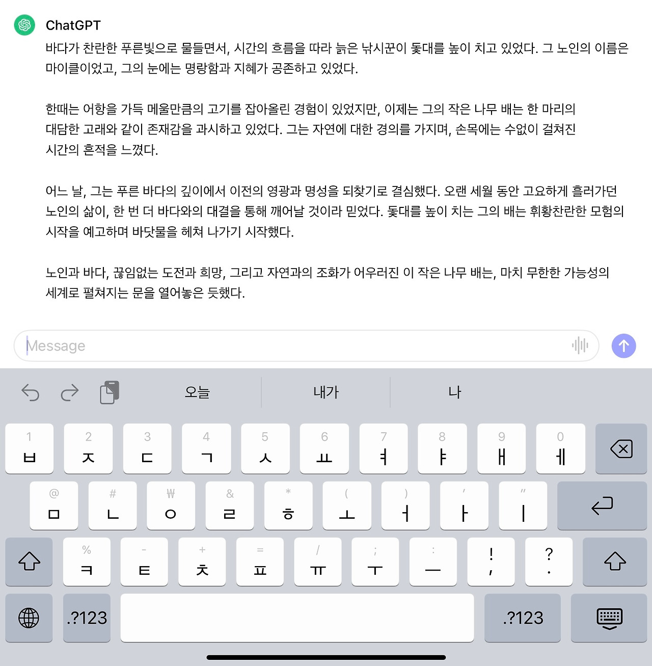 요즘은 AI도 소설이나 에세이에 뛰어든 시대다. 챗봇에게 [노인과 바다]를 닮은 짤막한 소설을 써달라고 했더니 30초 만에 뚝딱 쓰는 시대다.