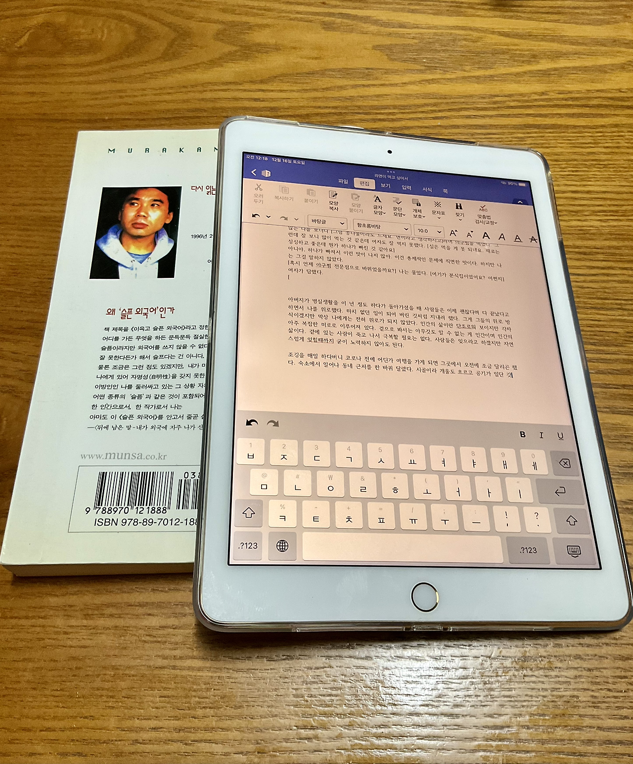 소파에 무릎을 접고 푹 파묻혀 앉아서 아이패드를 무릎에 대고 글을 쓰고 있다. 한 마디로 말하면 열약한 환경에서 글을 쓰고 있다. 그렇다고 해서 생각하는 것처럼 불편하거나 글이 잘 안 써진다거나 하는 건 없다. 이렇게 글을 쓴 지 오래되어서 그럴지도 모르겠다. 일하는 곳에서는 책상이 있지만 집에서는 책상이 없어서 불편한 자세로 글을 쓸 수밖에 없다.