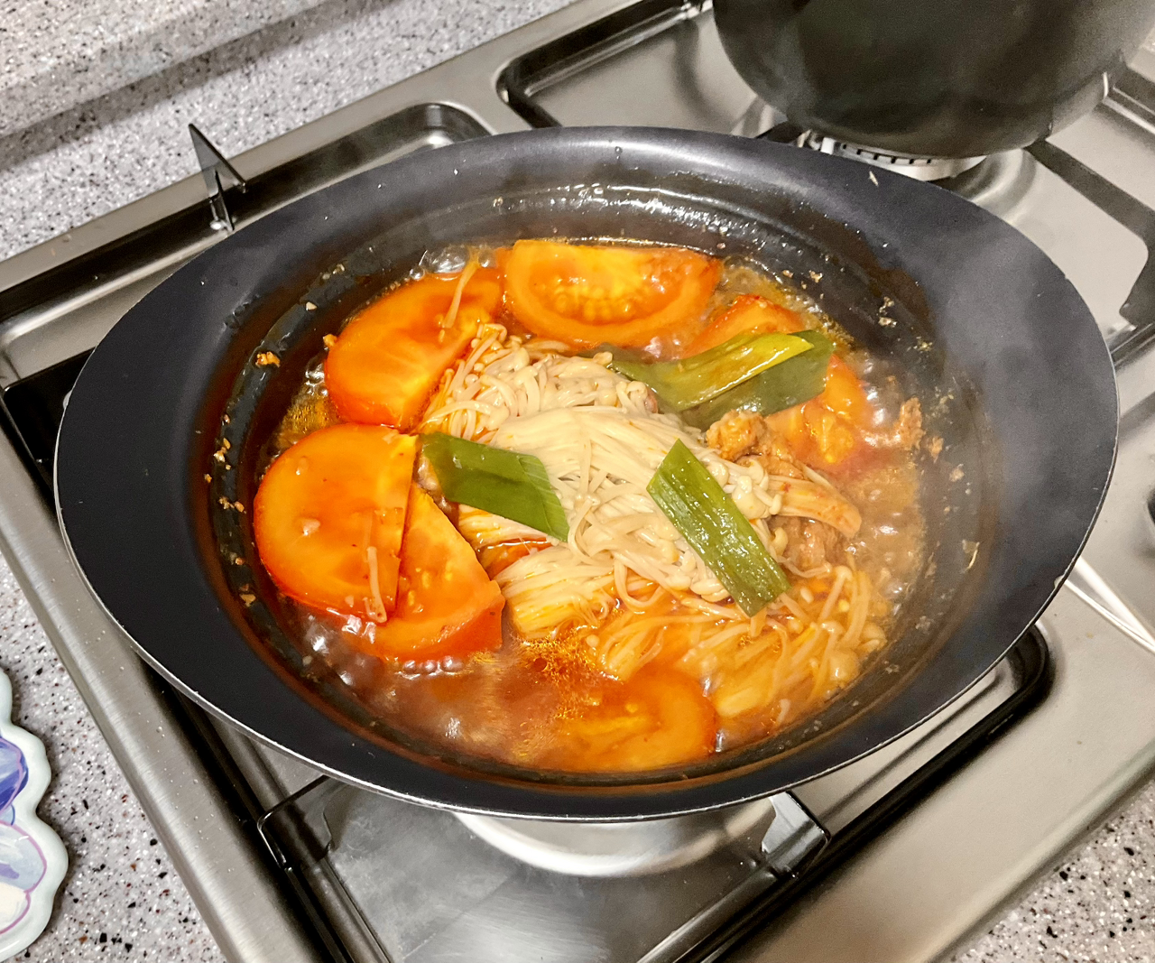 들어는 봤나 토마토 찌개다. 이게 무슨 맛?라고 할지도 모르지만 토마토는 어떤 찌개에 들어가도 다 잘 스며든다. 마치 조미료와 같다. 나 한 동안은 마요네즈에 빠져서 6개월간 마요네즈를 몇 통이나 먹었는지 모를 정도로 마요네즈를 여기저기 뿌려서 먹었는데, 매일 생으로 먹던 토마토를 뜨겁게 해서 먹으니 훨씬 맛이 좋아서 여기저기 풍덩풍덩 빠트려서 먹고 있다.