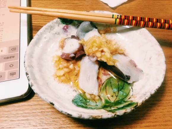 울진에서 문어가 날아오는 날이면 삶아서 기름장으로 먹는다. 오물오물 씹고 있으면 맛이 좋다. 내가 있는 곳 역시 어촌이지만 문어가 잡히지 않는다. 선명한 빨판이 오종종한 문어에서는 기품까지 느껴진다.