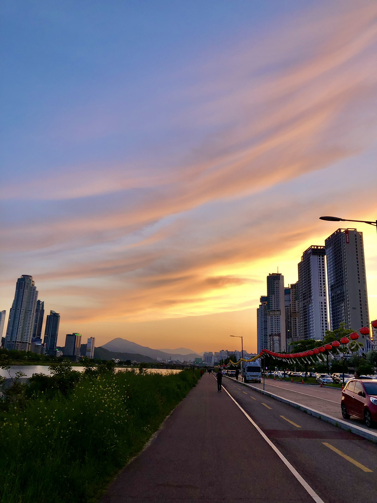 노을은 노을대로 타오를 수 없을 정도로 타오른다. 휴지를 집어던지면 확 타버릴 것 같다. 노을을 담은 멋진 사진을 보러 가지 말고 직접 이렇게 자주 노을을 보자. 아름다운 것을 찾으러 다니기보다 곁에 있는 아름다움을 봐야 한다. 노을은 저녁에 나오면 볼 수 있다. 밖으로 나오지 않으면 이 아름다운 노을은 볼 수 없다. 많은 소설과 영화에서 소중한 것들은 늘 가까이 있으니 가까이 있을 때 어쩌고 하는 말을 한다. 동의한다. 그러나 인간은 늘 가까이 있는 것들은 놓치게 된다. 나 역시 인간이라 가까이 있던 소중한 무엇인가를 그동안 많이 놓치며 살았다.