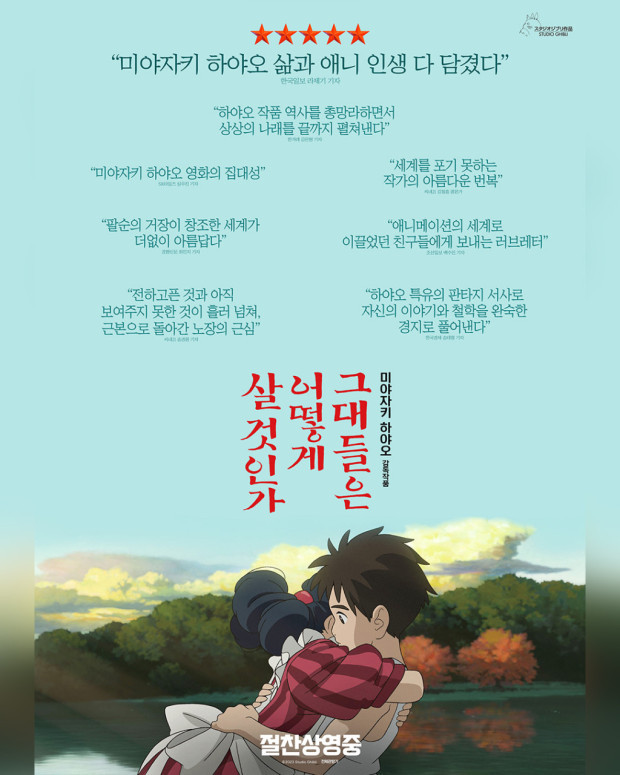 하야오가 일본 제국주의를 비판한 원작 소설을 가져온 이유는 전쟁 속에서도 생명은 너무나 소중하기에 생명은 계속 이어져야 하며 죽음이라는 건 삶의 대극이 아니라 한 부분이라는 걸 히미와 마히토를 빌어 절실히 말하고 있다고 생각이 들었다.