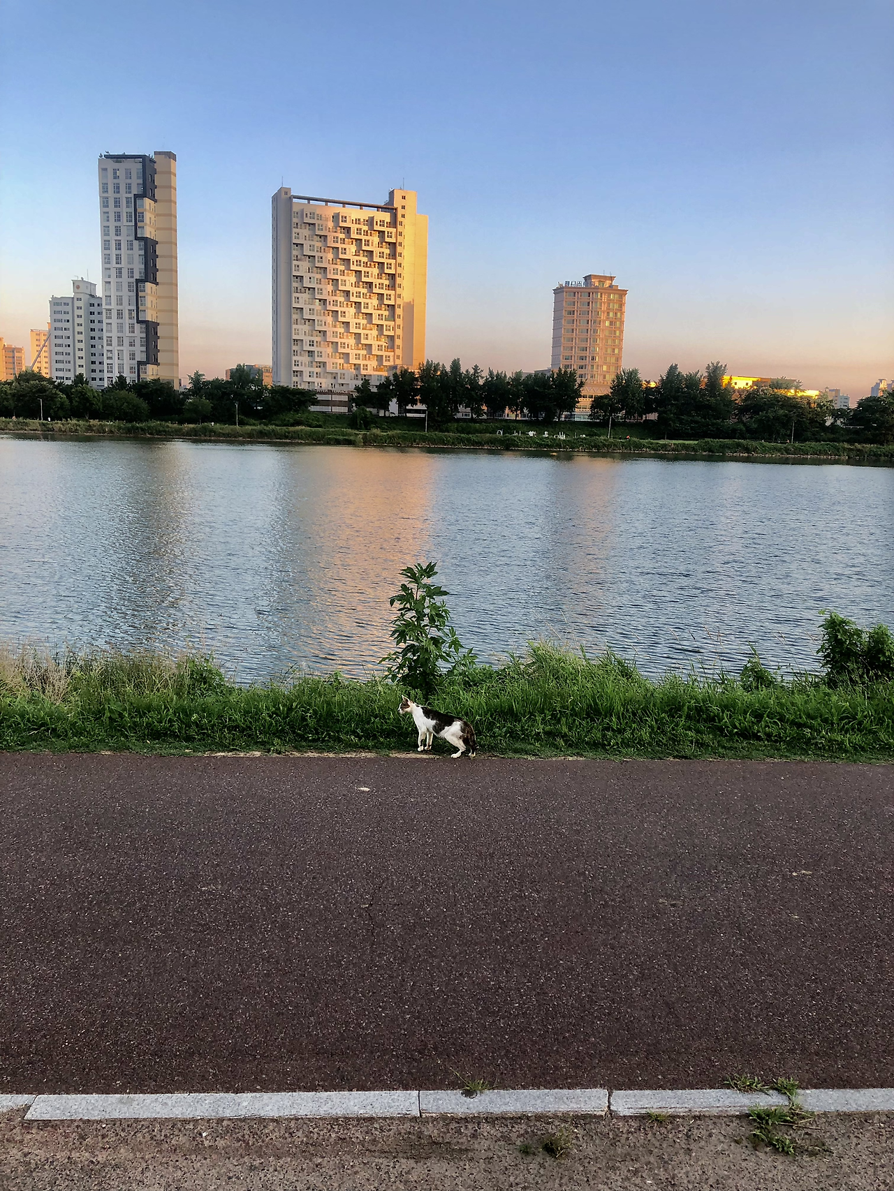 도심지라고 해도 강변에는 차가 없으니까 저녁에 조깅을 하다가 숲이 있는 곳으로 가면 매미소리가 들린다. 듣기 좋다. 여름이고. 조깅을 하면 땀이 흠뻑 나오고. 너무나 좋다.