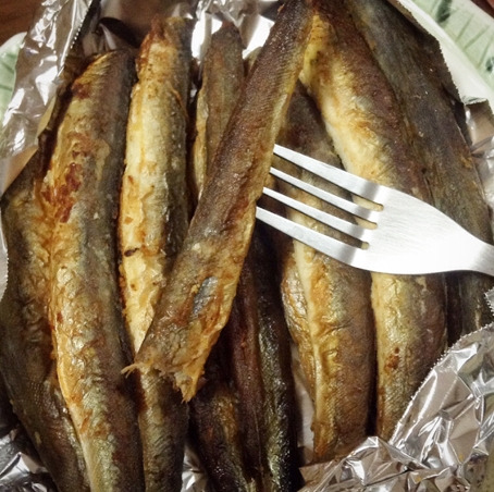양미리를 조리거나 직화로 구우면 비린내가 싹 달아나 버려서 비린 맛을 좋아하는 나로서는 이렇게 프라이팬에 구워서 식히면 양미리의 씹히는 그 맛과 함께 약간 비린 맛을 동시에 느낄 수 있다. 이렇게 구워서 식혀두면 비린내 때문에 아무도 먹지 않아서 나 혼자 다 먹을 수 있다.
