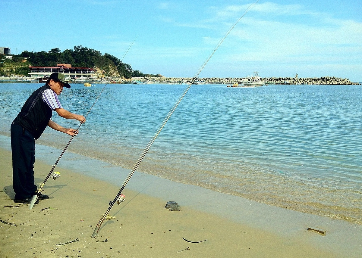 여름에 가까워지면 낚싯대를 드리우고 시간을 보내는 사람들이 늘어나는 바닷가