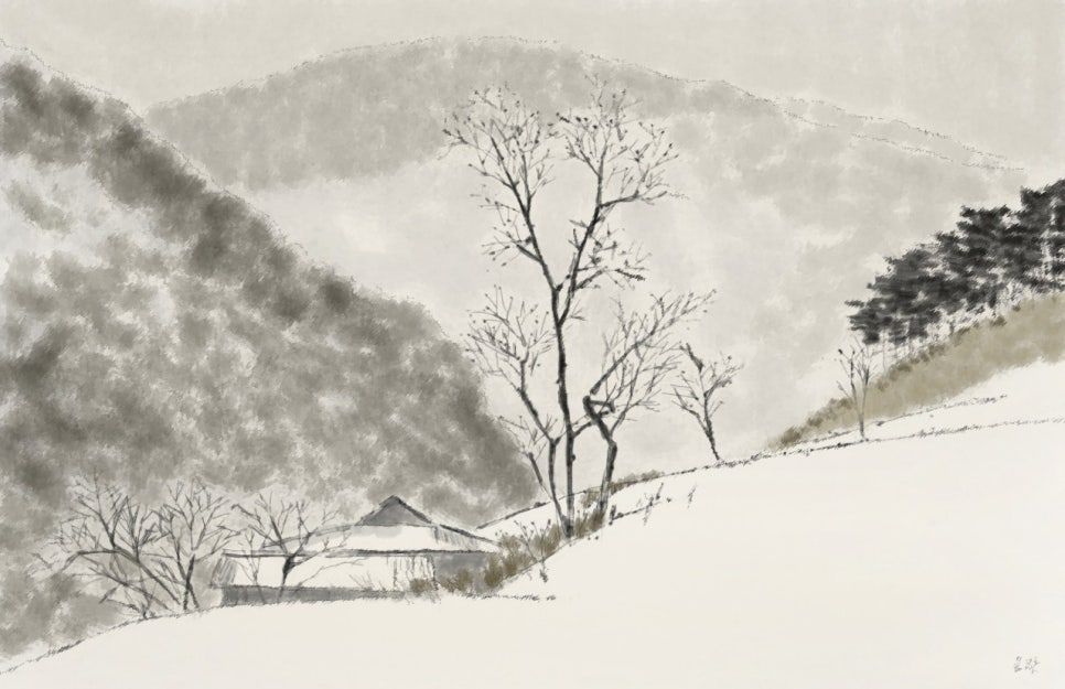 겨울의 모습을 마우스로 그려봤다. 어려워 보이지만 점묘법처럼 마우스 커서만 크고 적게 해가며 콕콕 찍으면 이렇게 그림이 된다.