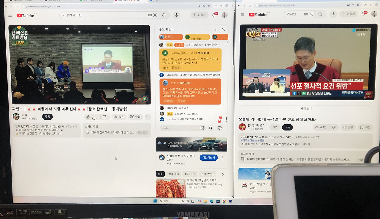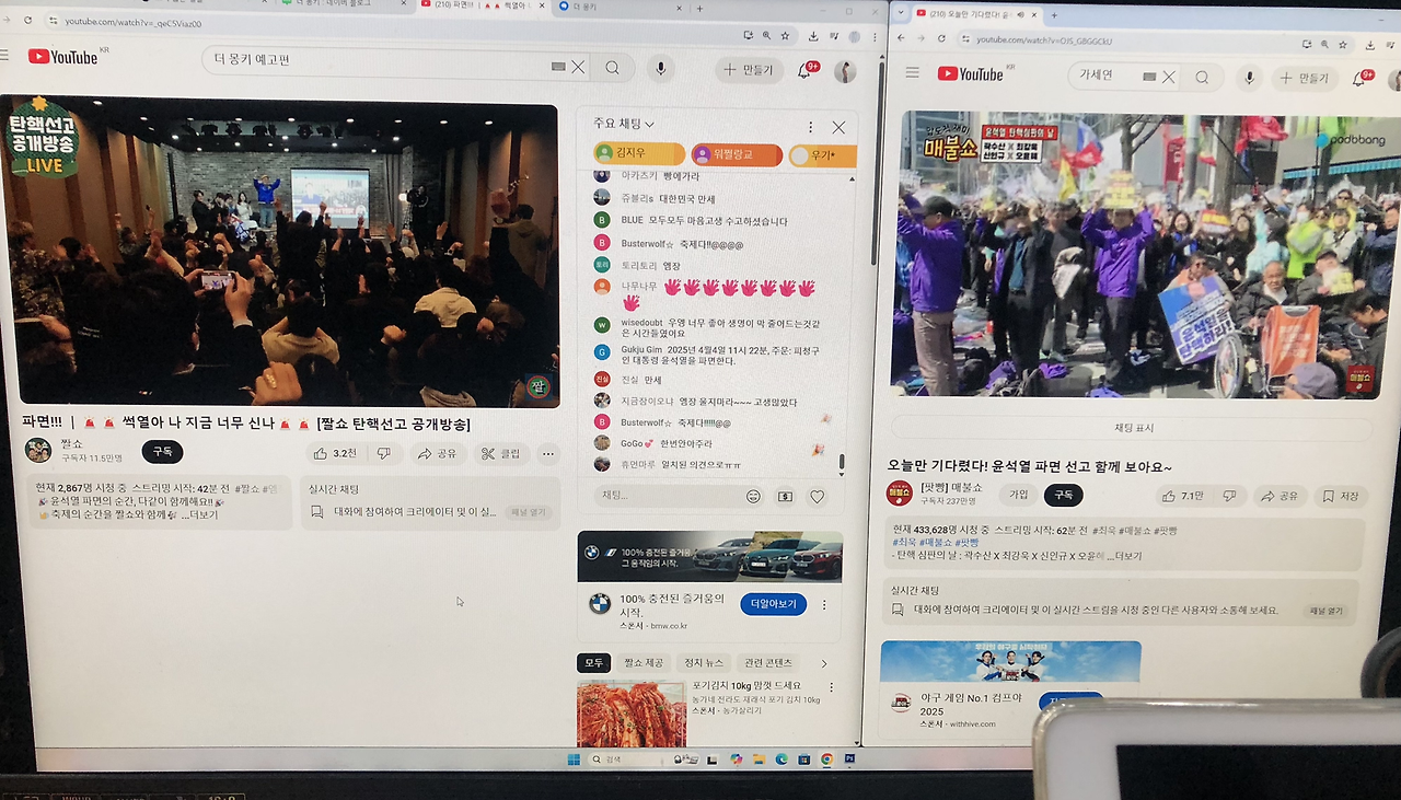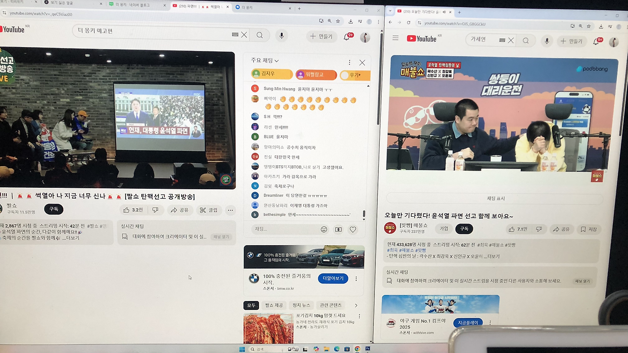 파면이 선고된 후 틀어 놓은 엠장프로와 매불쇼에서는 환호.