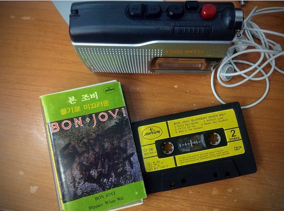 본 조비의 앨범 몇 개는 카세트테이프로 가지고 있어서 요즘도 카세트 플레이어로 왕왕 듣는다. 당연하지만 유튜브나 음악파일로 듣는 것에 비해 불편하다. A면과 B면의 터울이 있고 듣고 싶은 음악을 바로 찾아서 들을 수 없다. 하지만 카세트테이프는 단단하게 가지고 있는 그만의 맛이 확실하게 존재한다.