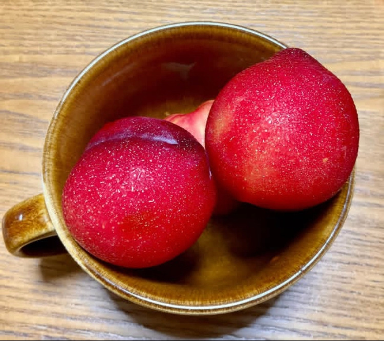 물방울이 겉면에 맺힌 시원한 자두를 먹고 있으면