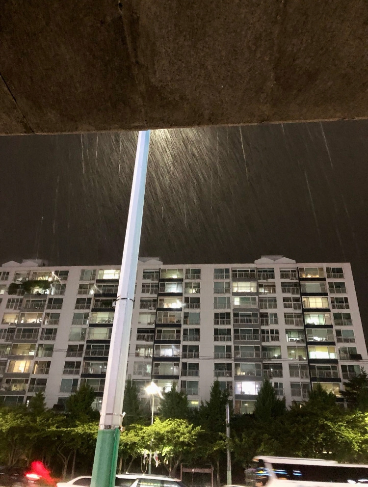 왜 왜 왜!! 내가 조깅할 때만 천지대비가 내리냐고 천둥에 번개에, 어쩔 시구 오늘도 대역죄인의 몰골로 들어가는구나 어디 욕 할 곳 없나? 야이 %^$$~$|놈아