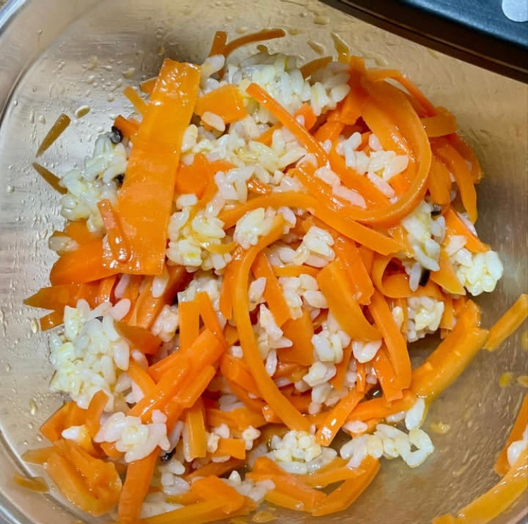 당근에 밥을 비벼 냠냠 먹다 보니,