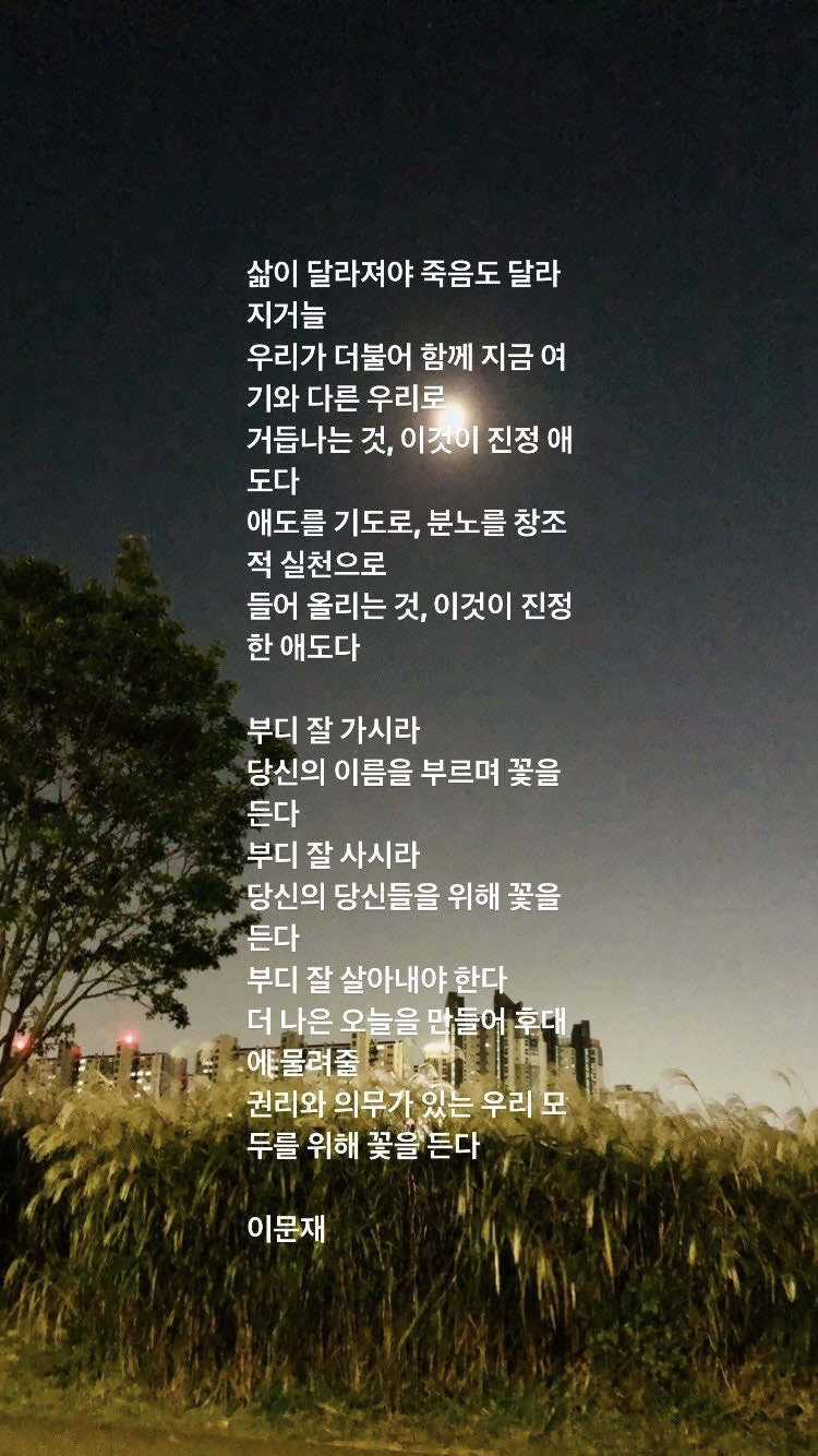 SNS가 있어 매년 조촐하게 추모를 할 수 있다. 이문재 시인의 추모시를 보며 하루를 마무리하자.