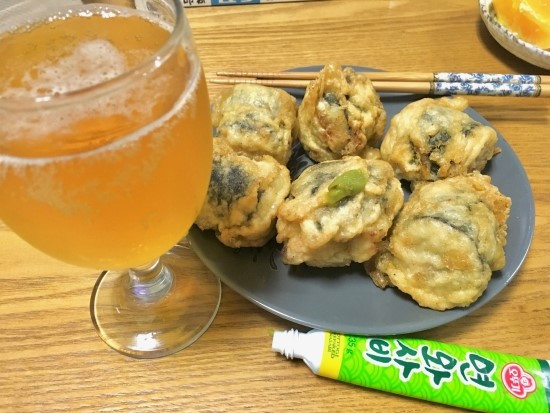 김밥 튀김은 뜨거울 때보다 식은 김밥 튀김에 와사비를 듬뿍 뿌려 먹는 게 맛있다. 하나에 사백 원, 다섯 개 이천 원. 사천 원이면 김밥 튀김이 열 개다. 맥주와 함께 홀짝거리며 먹다 보면 꽤 기분이 좋다. 미나리 무침과 함께 같이 먹다 보면 분명하게 위로를 받는다.