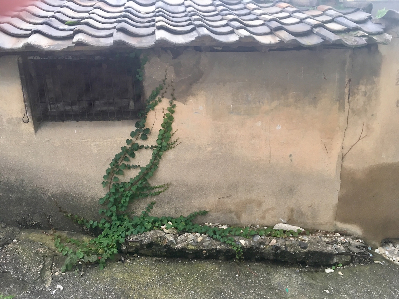덩굴이 벽을 타고 기어오른다. 이쪽 눈으로 보면 그저 골목의 모습이지만 또 다른 눈으로 보면 그림이다.